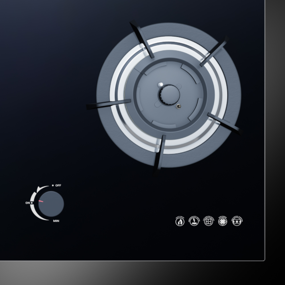 Bếp gas âm kính mang kiểu dáng sang trọng, mặt kính hoàn toàn đen bóng, kính chịu lực với chịu nhiệt tốt mà dễ dàng vệ sinh lau chùi còn tiết kiệm diện tích giúp