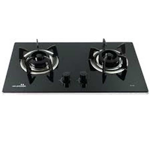 Bếp 02 lò: 01 lò to, 01 lò nhỏ Mâm chia lửa bằng đồng Hệ thống đánh lửa pin Pép hầm tiết kiệm gas Mặt kính cường lực, màu đen Kiềng gang đúc Lượng gas