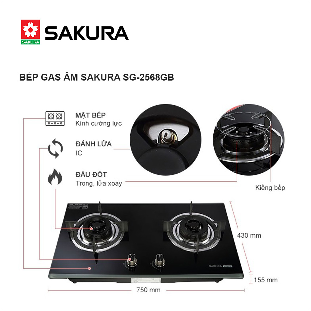 ✨ Bếp gas âm SAKURA SG-2568GB - Hàng chính hãng