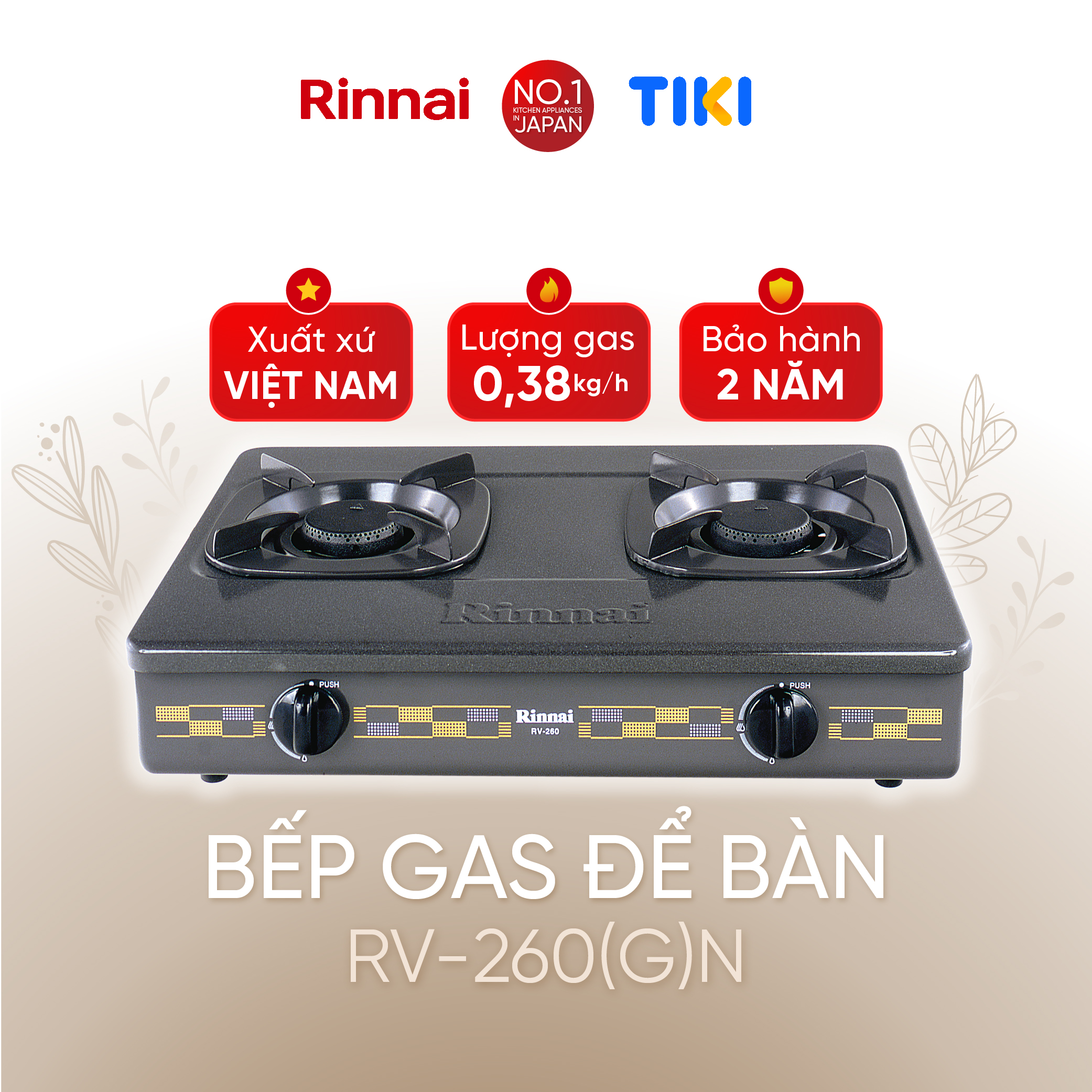 Bếp gas dương Rinnai RV-260(G)N mặt bếp men và kiềng bếp men - Hàng chính hãng. THÔNG TIN CHI TIẾT SẢN PHẨM Bếp gas để bàn Rinnai RV-260(G)N là sản phẩm bếp gas đến