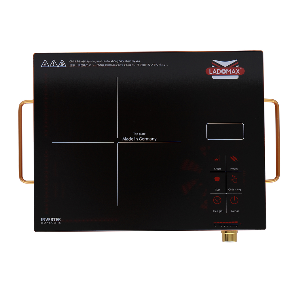 Tên sản phẩm: Bếp hồng ngoại 2200W Ladomax Ha-666 Inox VIỀN VÀNG Mặt Kính GERMANY Cao Cấp