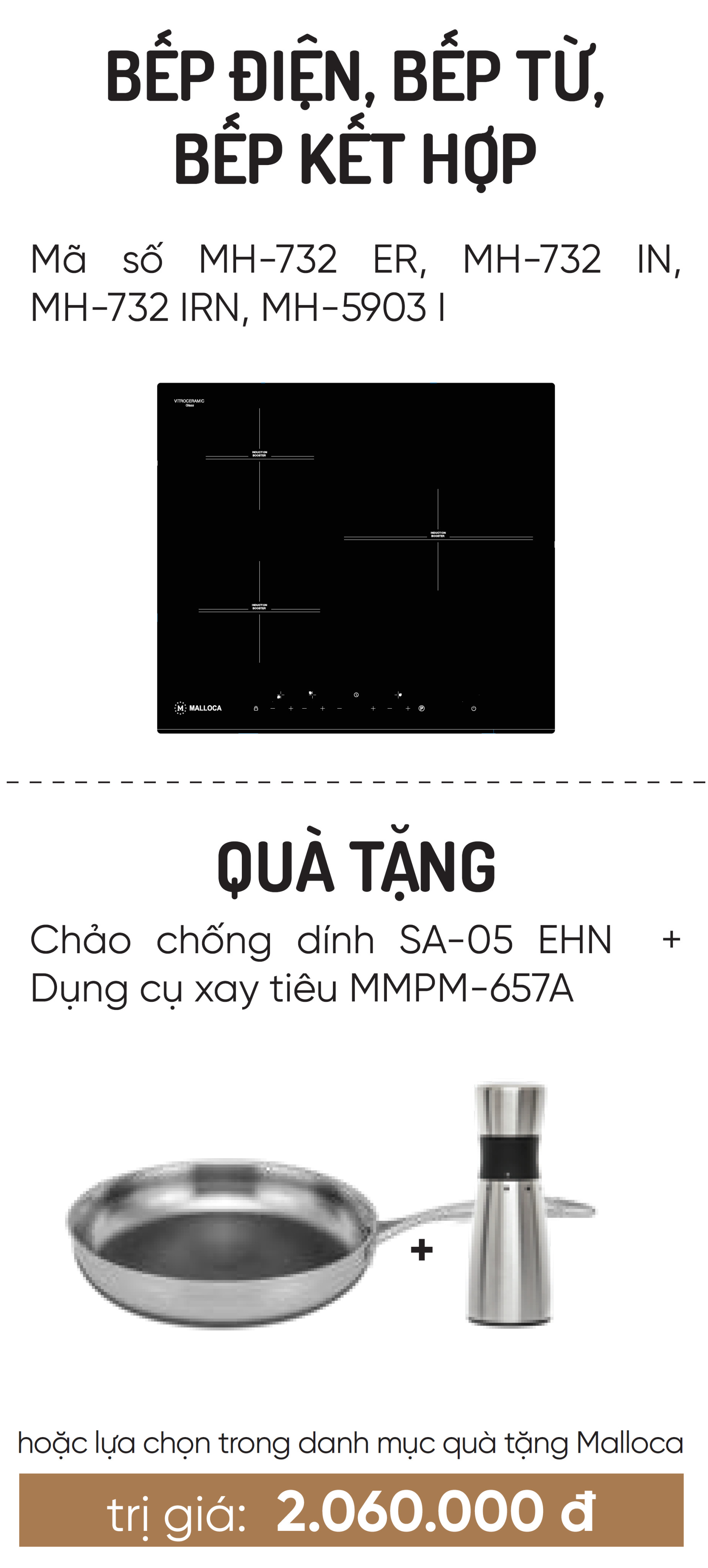 ✨Bếp kính âm 1 điện và 1 từ MH-732 IRN - Tặng dụng cụ xay tiêu + Chảo nấu từ cao cấp - Hàng chính hãng