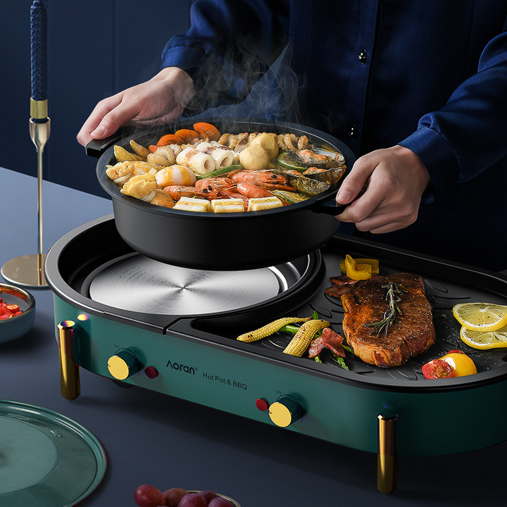 ✨Bếp lẩu nướng đa năng 2 trong 1 cao cấp Aoran GP-004 - Chất liệu nhôm đúc chống dính - Công suất 2000W - HÀNG NHẬP KHẨU