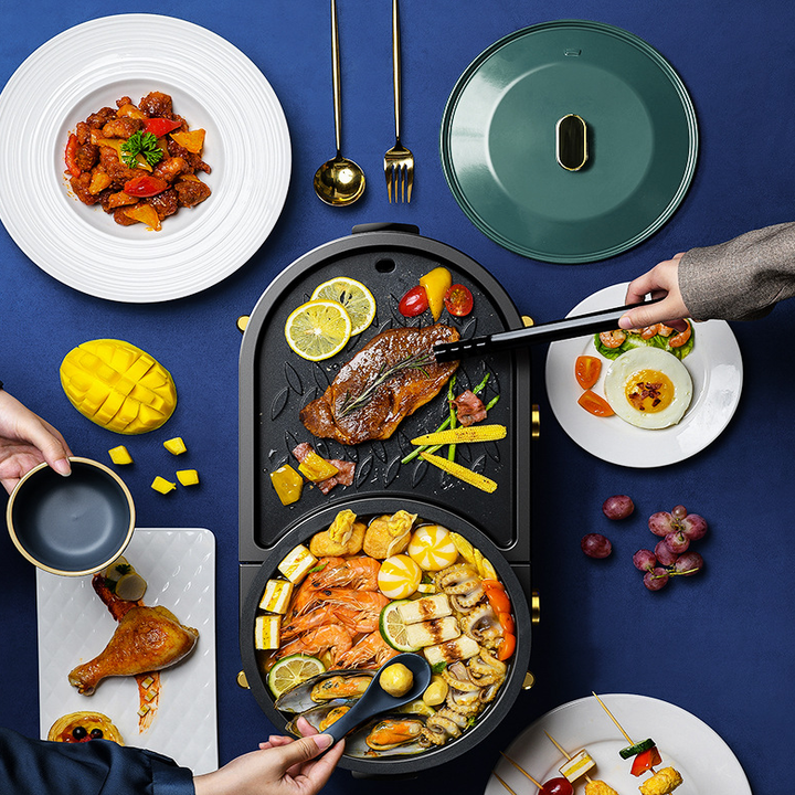 Bếp lẩu nướng 2in1 đa năng cao cấp dài, nồi lẩu kiêm nướng công suất 1300w, bề mặt tráng men chống dính Là một thiết bị nhà bếp sử dụng điện năng để chuyển hóa