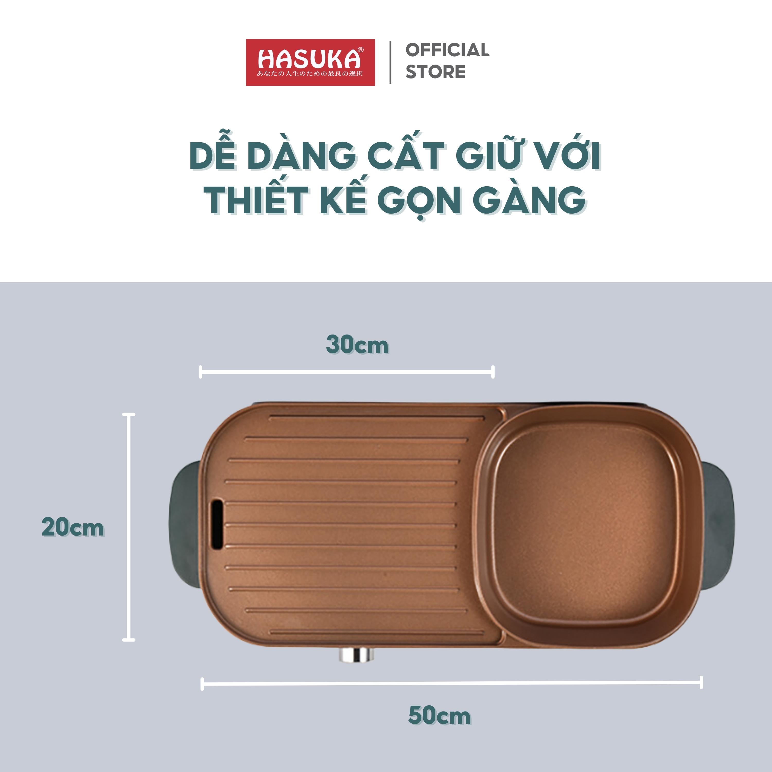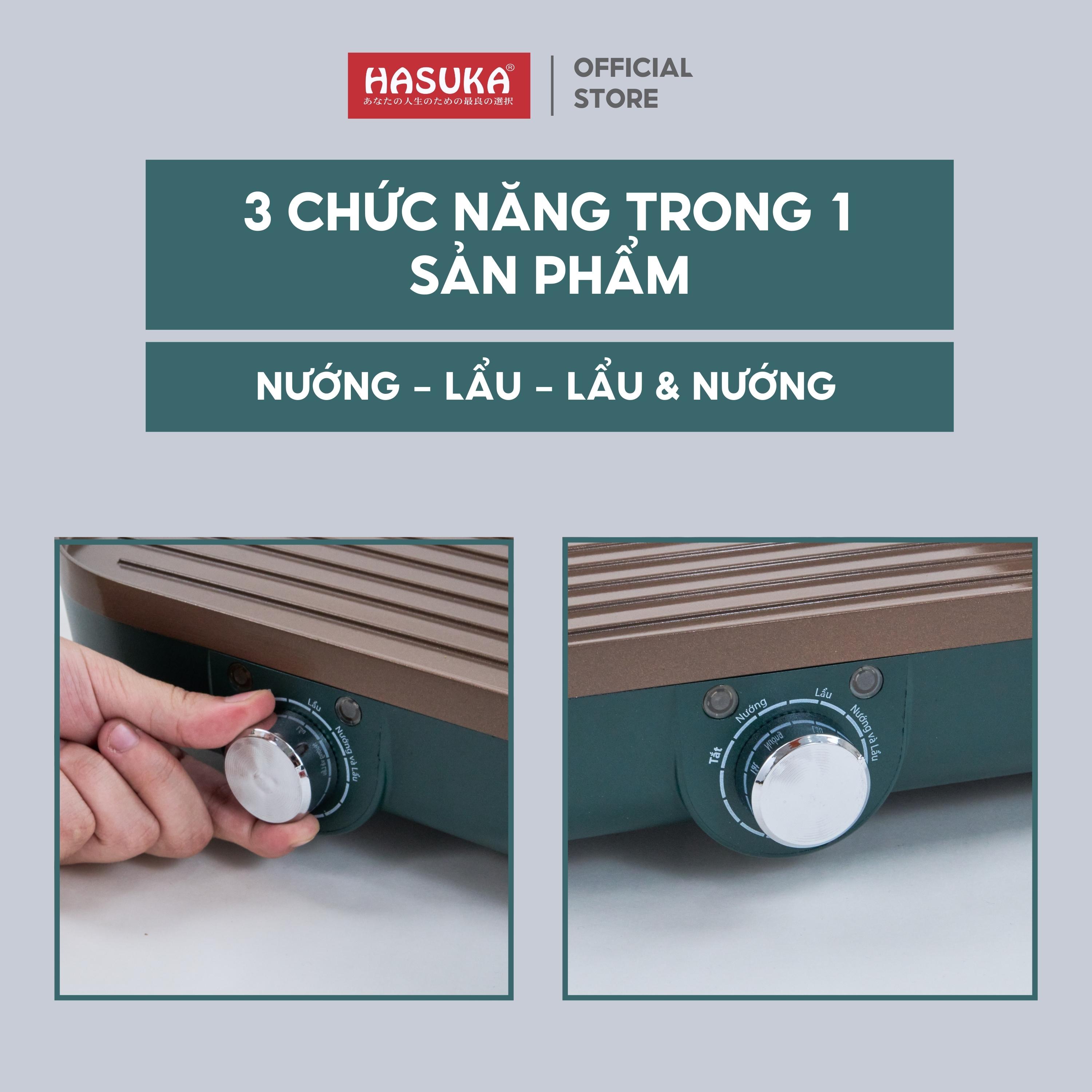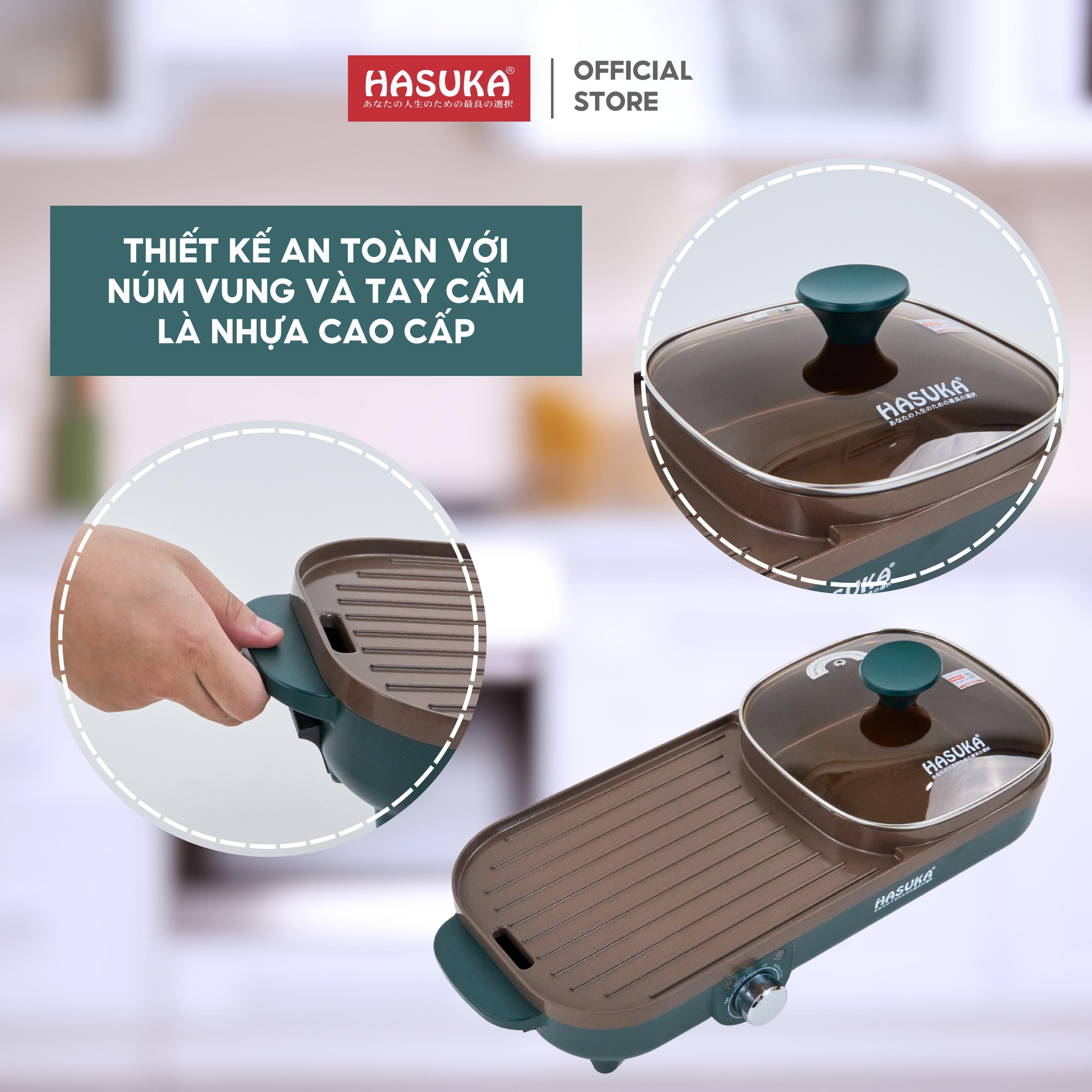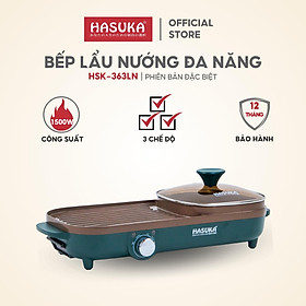 Bếp lẩu nướng đa năng HASUKA HSK-366LN 2in1 nướng lẩu đồng thời, lòng nồi chống dính Ceramic an toàn
