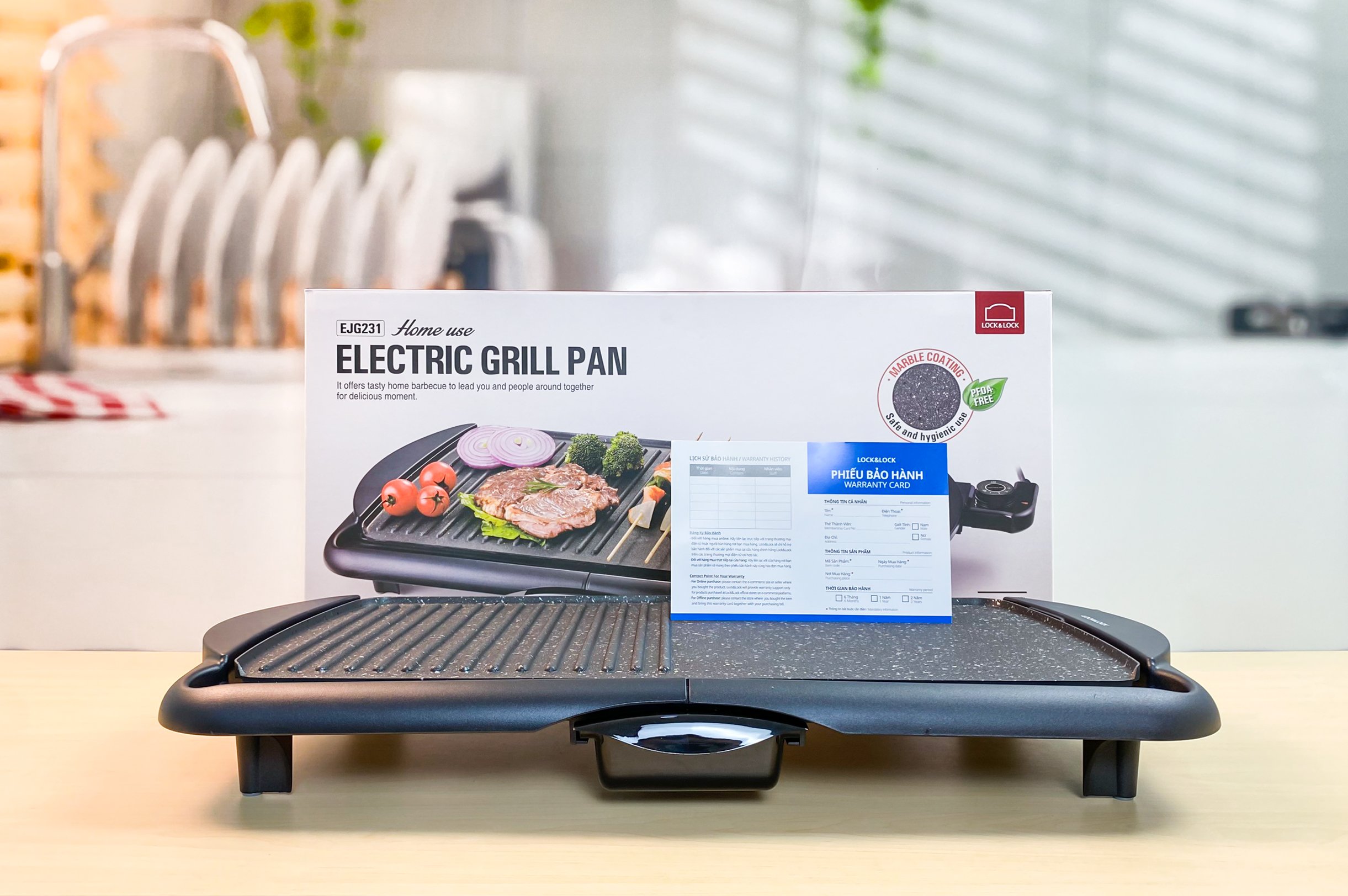 Vỉ Nướng Điện 2000W Lock&Lock Electric Grill Pan EJG231 mặt đá hoa cương Hàn Quốc, bảo hành 12 tháng