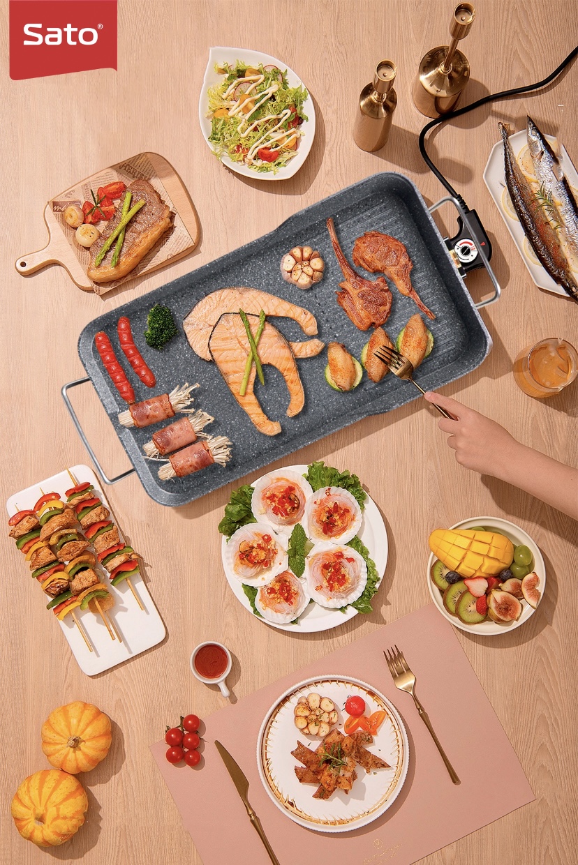 ✨Bếp nướng điện SATO BN11 - Bếp nướng được đúc bằng nhôm nguyên chất 100% có độ bền cao - Miễn phí vận chuyển toàn quốc - Hàng Chính Hãng