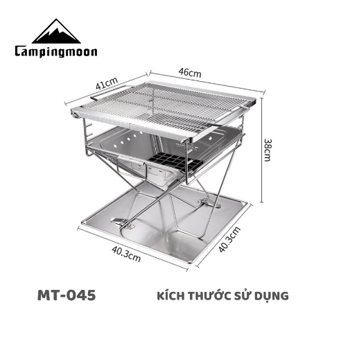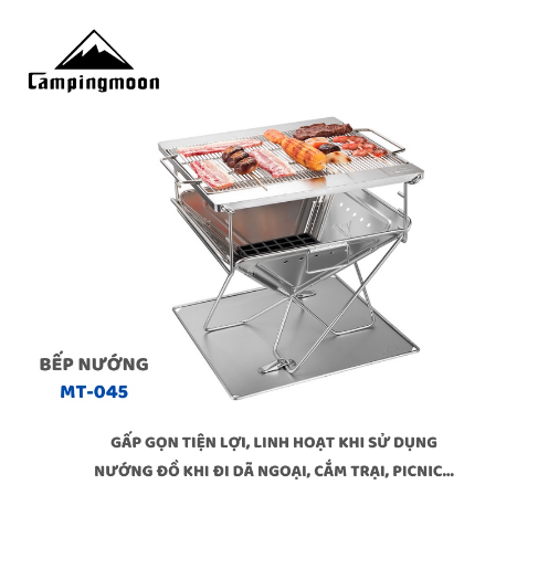 MÔ TẢ SẢN PHẨM BẾP NƯỚNG THAN HOA GẤP GỌN 6-8 NGƯỜI CAMPINGMOON MT-045 * THÔNG TIN SẢN PHẨM: - Thương hiệu: Campingmoon - Mã sản phẩm: MT-045 - Chất liệu: + Lưới nướng: Inox