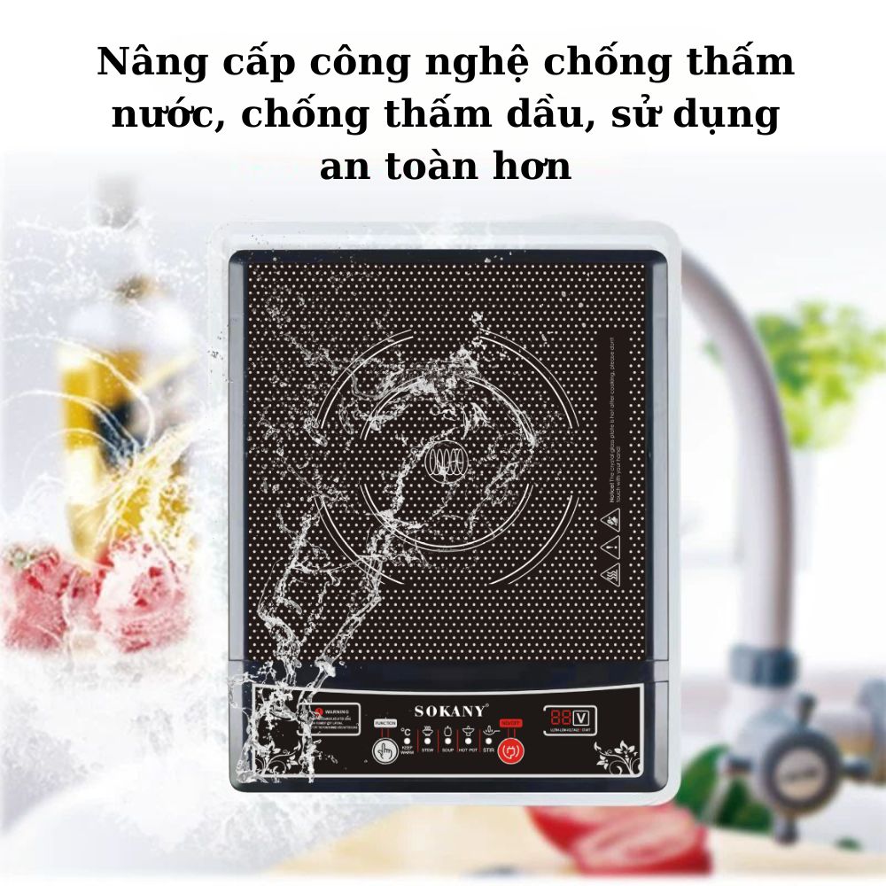 Bếp từ đơn Mặt kính Kanger chịu nhiệt Điều khiển bằng bàn phím cảm ứng,hiển thị thời gian điện tử Công suất 2000W Tiết kiệm 25% điện năng Chức năng khóa trẻ em Chức năng