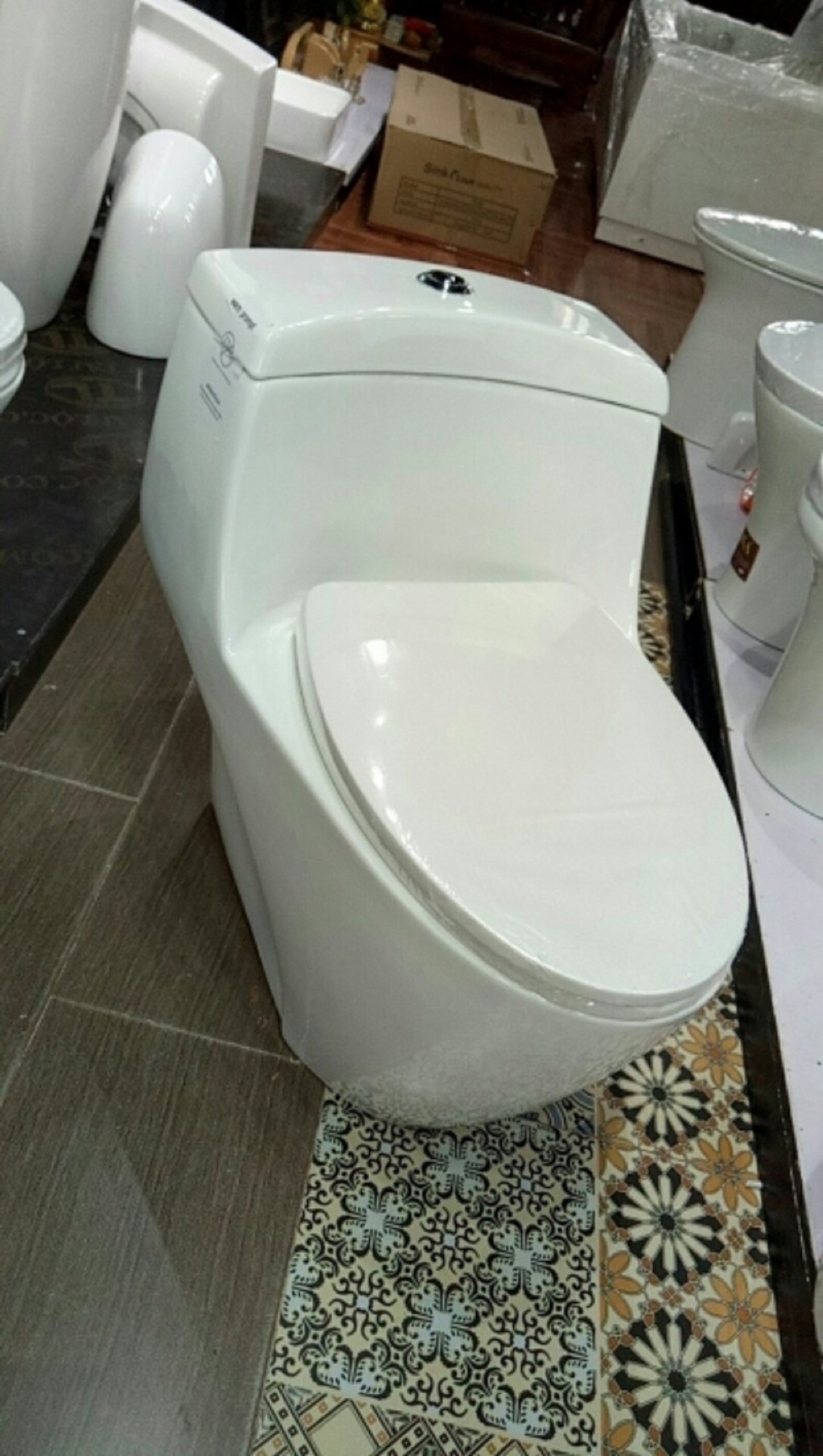 Kiểu dáng sang trọng hiện đại. - Chất liệu sứ cao cấp, hoàn hảo dài lâu trong suốt quá trình sử dụng. - Hoa văn vàng tạo cảm giác cho nhà vệ sinh trông quý