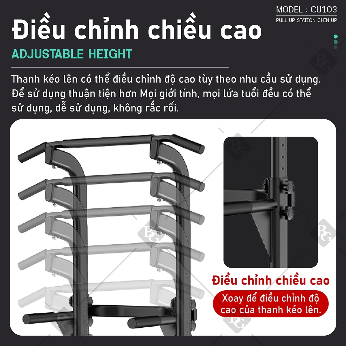 Xà đơn xà kép đa năng thích hợp lắp đặt để tập luyện tại nhà và nó hỗ trợ các bài tập cơ bản gồm: