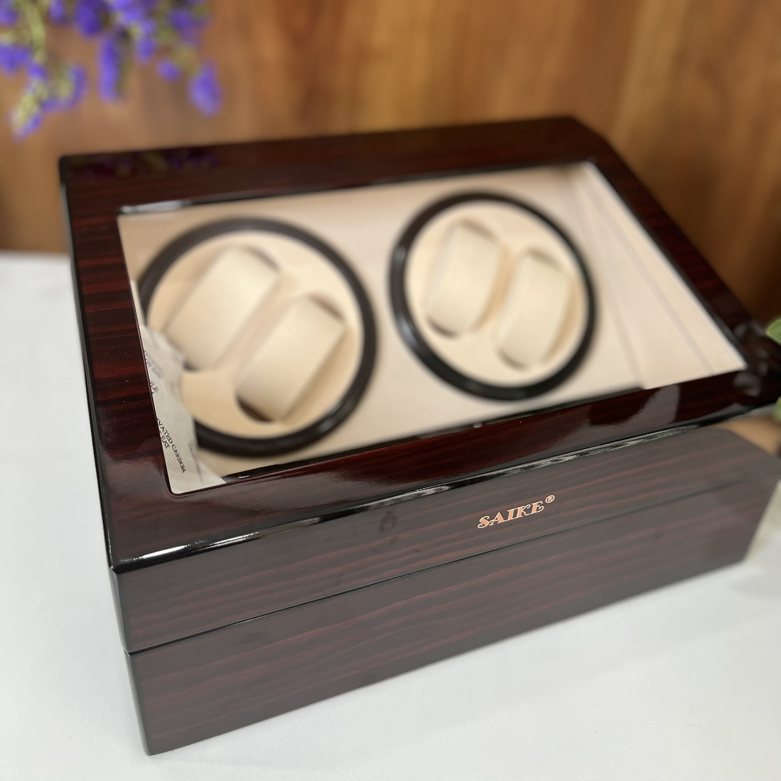 Thông tin sản phẩm: Hộp Xoay Đồng Hồ Cơ SAIKE S775 Vỏ Gỗ Tủ Lắc Lên Cót Đồng Hồ Tự Động Quay - Thương hiệu: SAIKE - Hộp thiết kế đựng 2 chiếc đồng hồ
