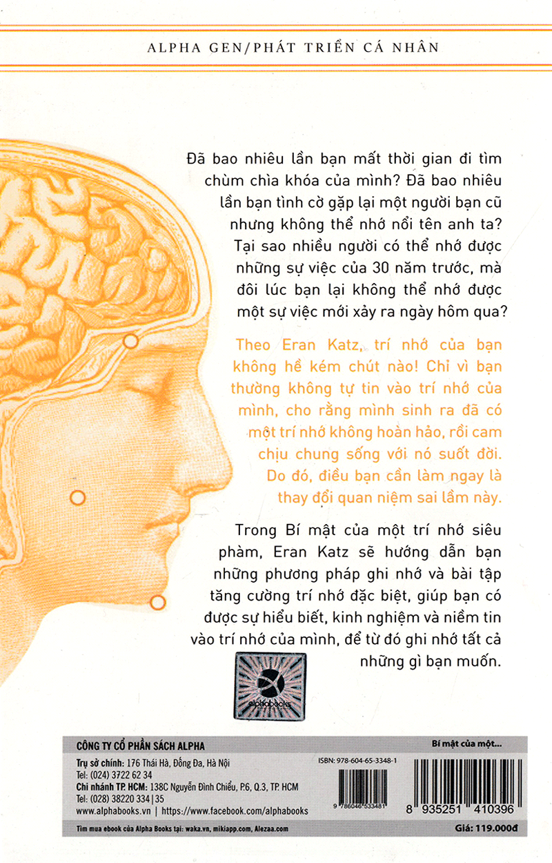 Với cuốn sách Bí mật của một trí nhớ siêu phàm, tác giả Eran Katz giúp bạn khẳng định: Trí nhớ của bạn tốt hơn bạn tưởng rất nhiều! Điều nghịch lý là bạn thường không tin vào trí nhớ của mình, cho rằng mình sinh ra đã có một trí nhớ không hoàn hảo, rồi bị động chung sống với nó suốt đời. Do đó, điều bạn cần làm ngay là thay đổi quan niệm sai lầm này.