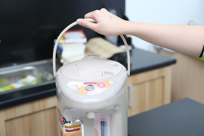 Bình Thủy Điện Sunhouse có quai đeo để di chuyển vị trí dễ dàng mà ít tốn sức, đồng thời đảm bảo an toàn cho người sử dụng.