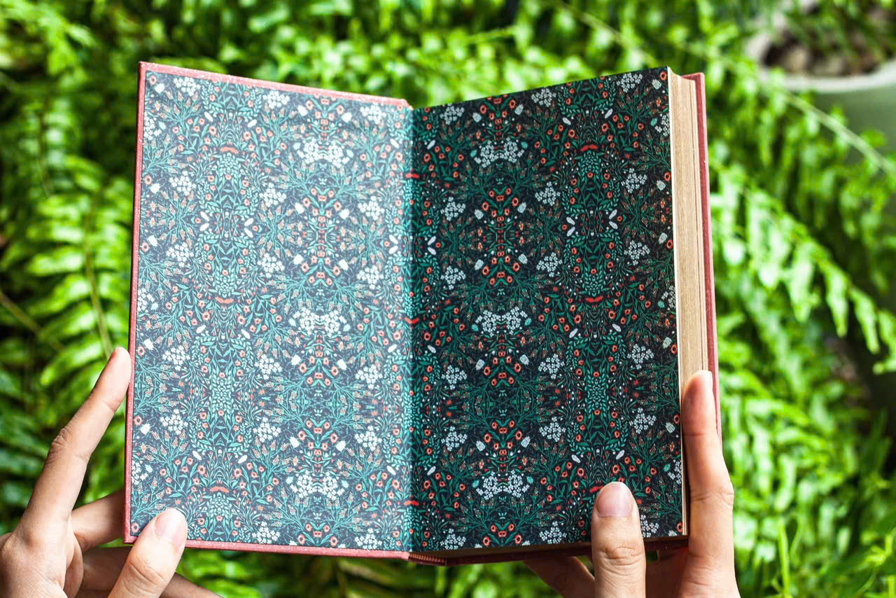 Trang gác in họa tiết vintage, như mời gọi bạn lật mở từng trang sách.