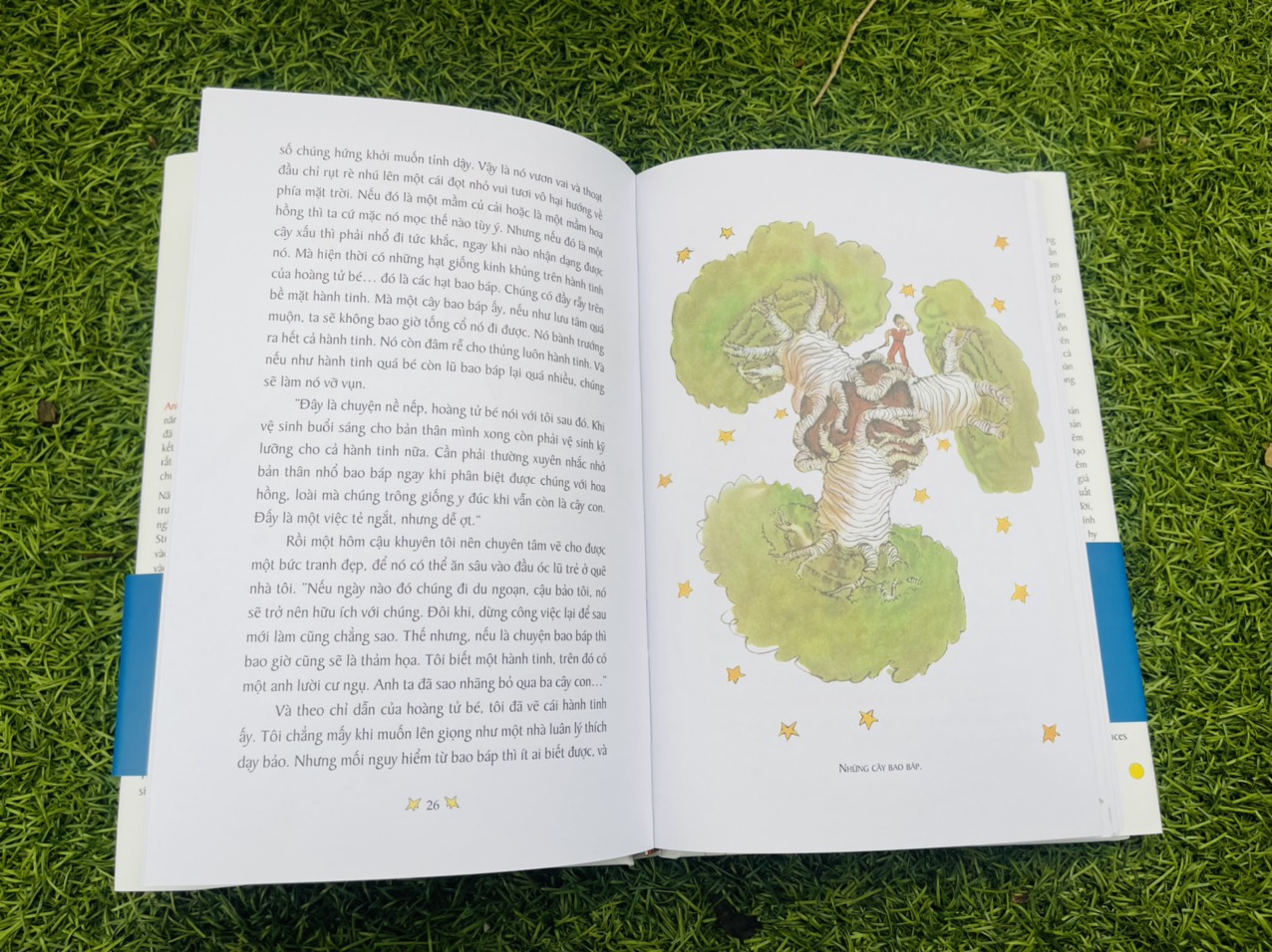 Cái tấm bìa trăng trắng này – tờ obi này xanh xanh này – trở thành cuốn sách bán mãi không ngừng của Nhã Nam (cùng với Toto-chan, Con mèo dạy hải âu bay, Chiến binh cầu vồ). Cuốn sách mãi quen thuộc với tranh minh họa của chính Antoine de Saint-Exupéry cùng bản dịch mới của Trác Phong. Và nay ta có ấn bản bìa cứng kỷ niệm đẹp đẽ cho nó.