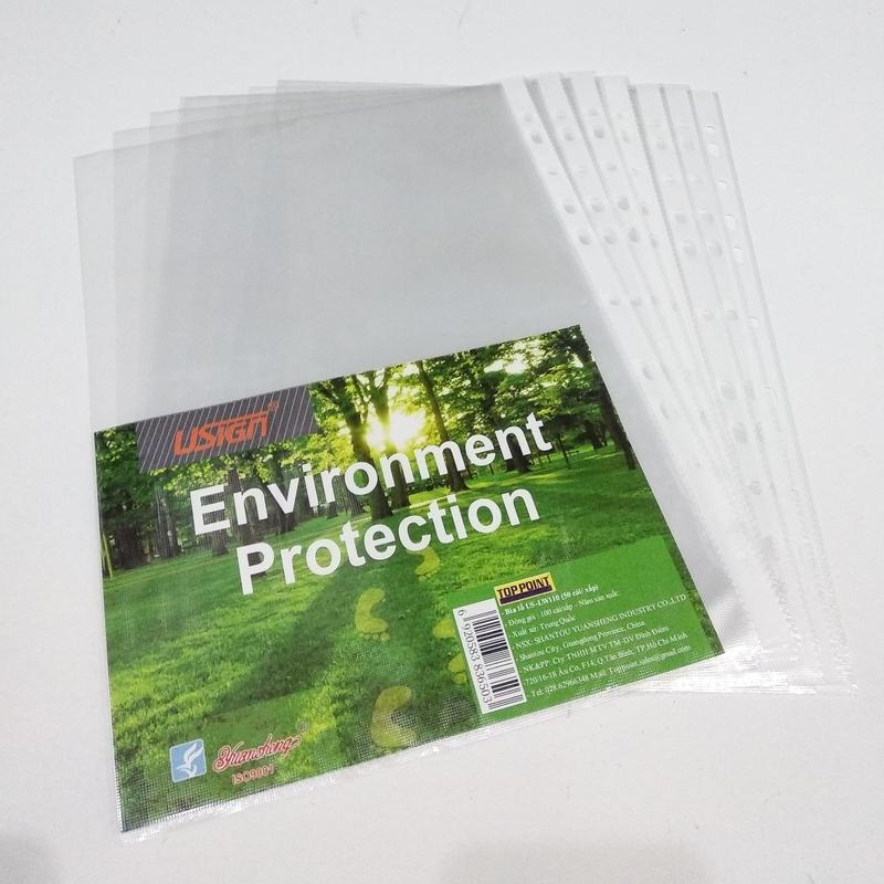Bìa màu trắng, được đục lỗ bên gáy với chất liệu nilon mỏng trong suốt, giúp bạn dễ dàng sắp xếp và lưu trữ tài liệu.
