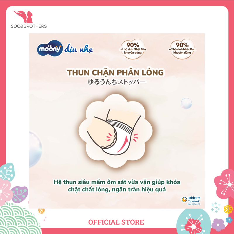 Moony là dòng tã siêu cao cấp được nhập khẩu nguyên gói từ Nhật Bản của Unicharm - nhà sản xuất tã em bé số 1 Nhật Bản (Unicharm Nhật Bản). Với chất lượng vượt
