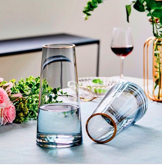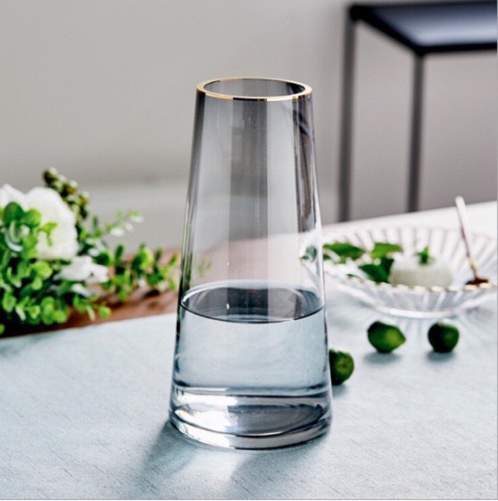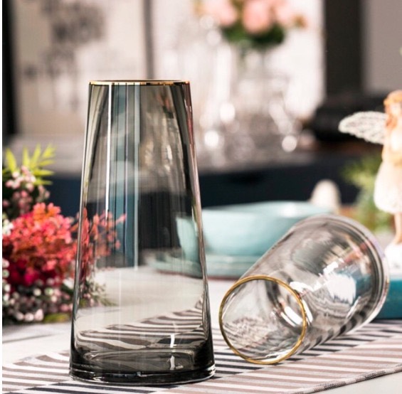 ✨BÌNH CẮM HOA THỦY TINH , LỌ CẮM HOA THỦY TINH MÀU XÁM KHÓI VIỀN VÀNG - VD40