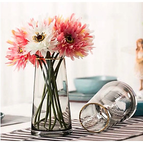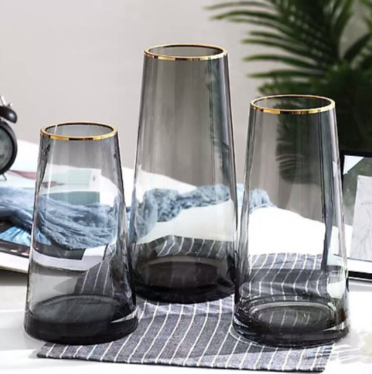 Lọ_hoa thuỷ tinh viền vàng màu xám tro sang trọng, bình thuỷ tinh được đúc dày dặn chứ không hề mỏng một chút nào Có 3 size cho các nàng chọn nha