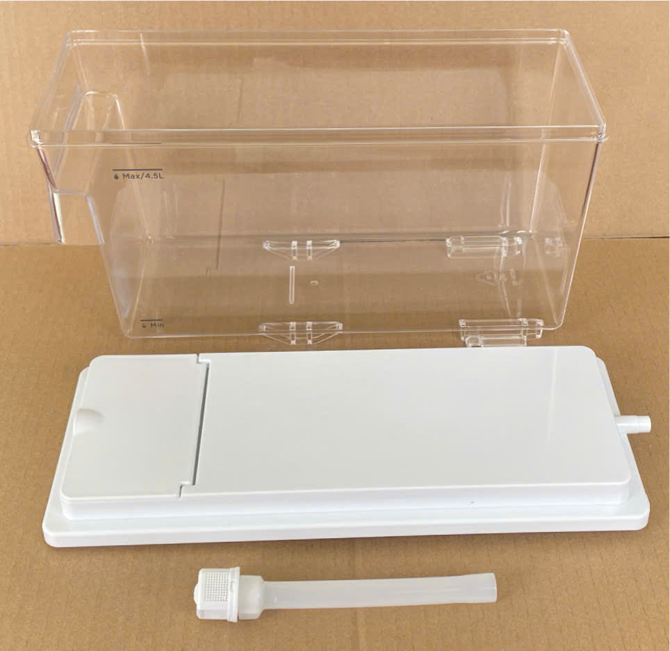 Bình chứa nước sử dụng cho tủ lạnh Electrolux 4 cánh EQE5660A-B Hàng mới 100% - Hàng chính hãng Dung tích: Min 0.5L – Max 3.5L Bình chứa nước gồm 3 bộ phận như sau: