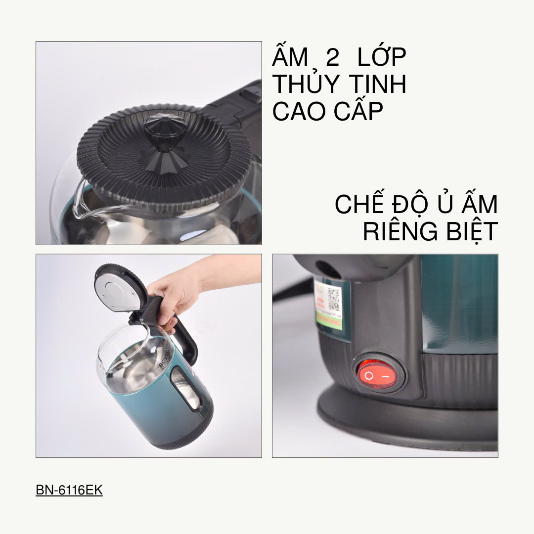 Bình Đun Siêu Tốc Ủ Ấm 2 Lớp Cách Nhiệt Bằng Thuỷ Tinh Bennix BN-6116EK Dung Tích 2L Công Suất 1500W- Hàng Chính Hãng Với thiết kế kết hợp giữa thủy tinh và thép không gỉ, Bennix BN-6116EK không chỉ mang lại sự tiện ích mà còn làm nổi bật phong cách của gian bếp nhà bạn. Đây là sự lựa chọn hoàn hảo cho những ai yêu thích sự tinh tế và hiện đại.