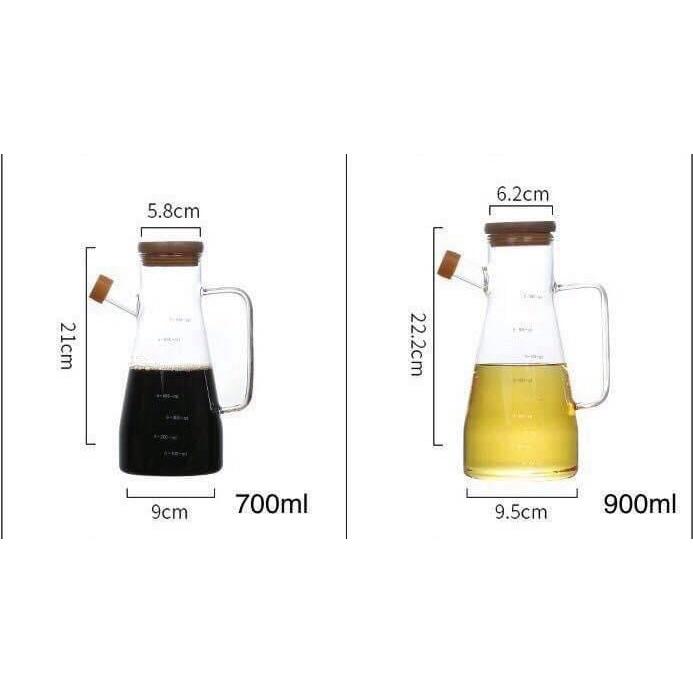Chai thủy tinh đựng gia vị lỏng có tay cầm nắp gỗ phong cách Nhật Bản đựng mắm, mật ong, giấất tần tật các gia vị lỏng vừa đẹp mắt, sạch sẽ, dễ vệ sinh