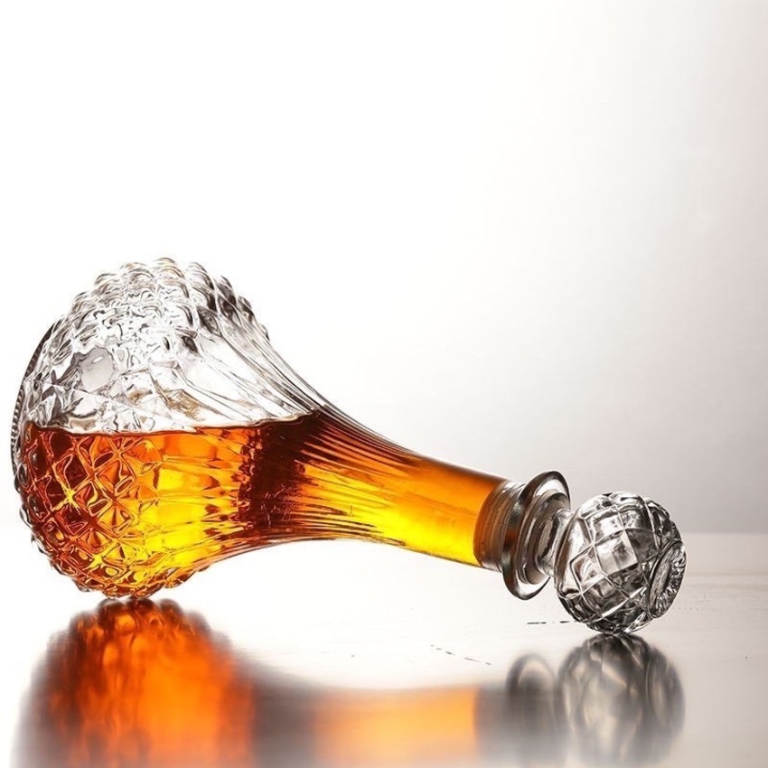 - Độ dày bình thủy tinh hơn 7 ly, thân trên phình thân dưới hóp, có gân nổi trên thân hoa văn kim cương tạo thêm độ rắn chắc, nam tính và tạo cho người
