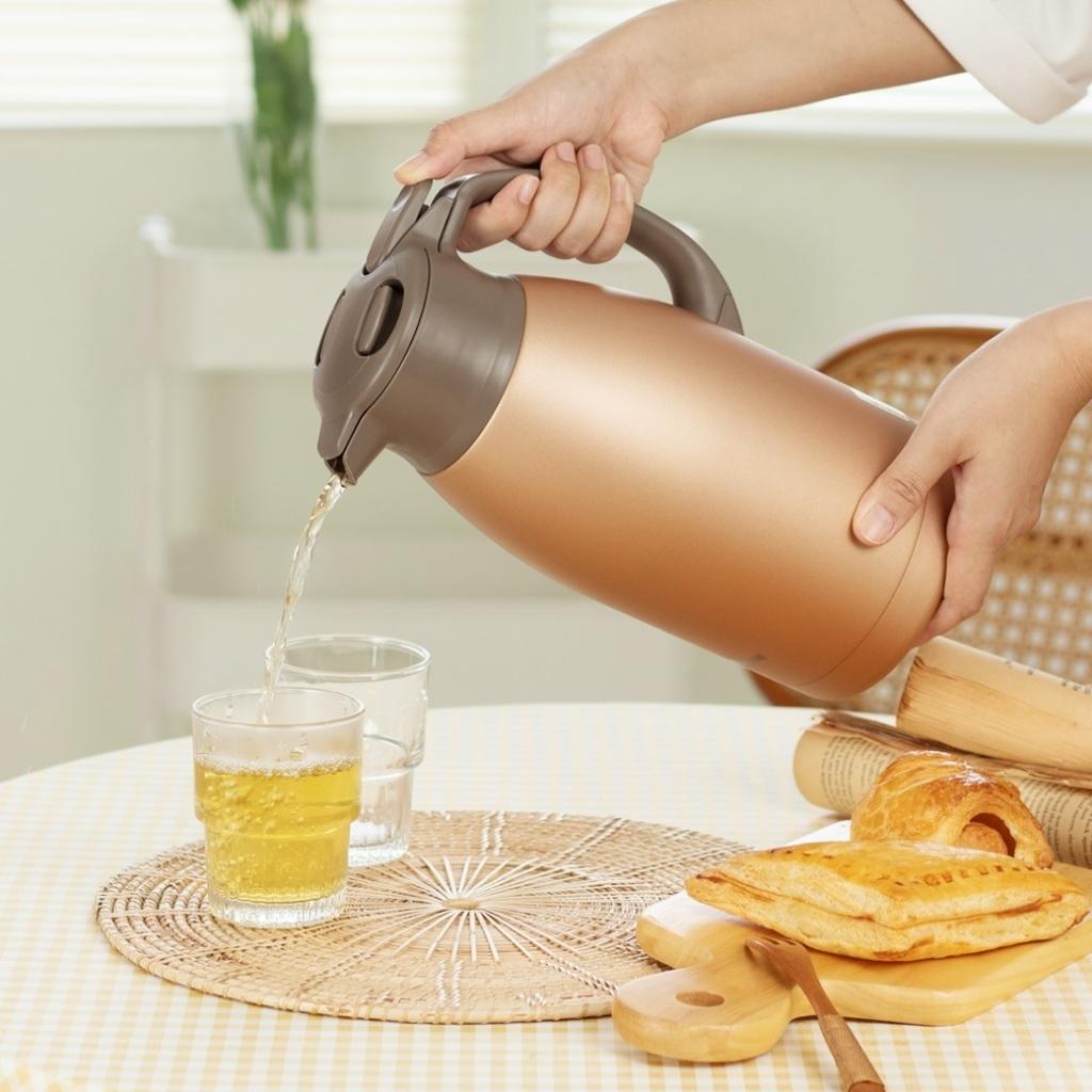 Rót nước: Bấm nút OPEN/CLOSE khi rót, giúp nước chảy đều và giữ nhiệt tốt.