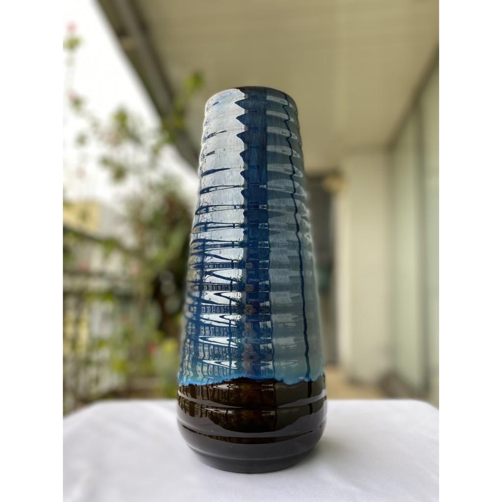 Mua tại TiktokBình hoa Bát Tràng cao cấp, hàng chuẩn loại 1, men hỏa biến với nước men màu xanh lam căng bóng, mịn màng. Bình hoa dáng cao, dáng lò xo xoắn, màu men bắt mắt, rất dễ dàng để phối với nhiều loại hoa khác nhau, trưng bày trong phòng khách, phòng làm việc, phòng ngủ đều giúp cho không gian trở nên sống động, tươi mới, thu hút. Sản phẩm cao 34cm, miệng bình 9cm, vòng bụng bình 41cm