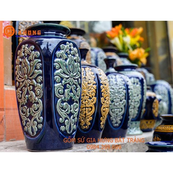 Mai bình hoa sen nổi vẽ vàng cao cấp Bát Tràng - Bình gốm Hoạ Tiết hoa sen điêu khắc nổi -0919174700