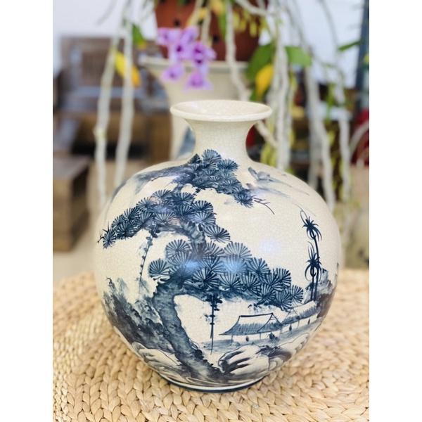 ✨Bình hút lộc men rạn giả cổ, họa tiết vẽ thủ công hoa phù dung Bát Tràng.