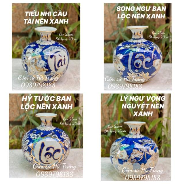 ✨Bình hút tài lộc gốm sứ Bát Tràng cao cấp vẽ vàng 24k các hoạ tiết trên nền xanh cao 25cm