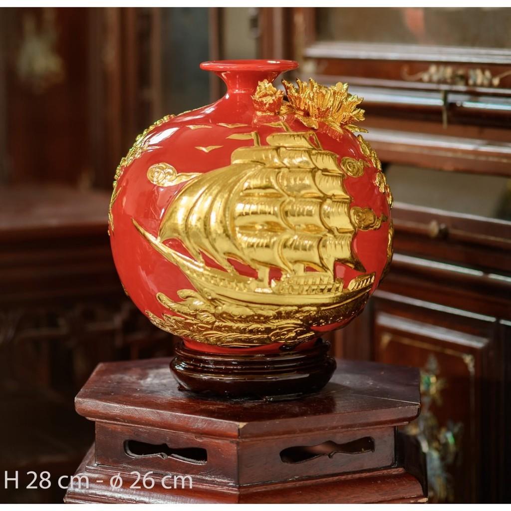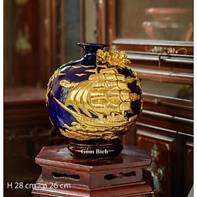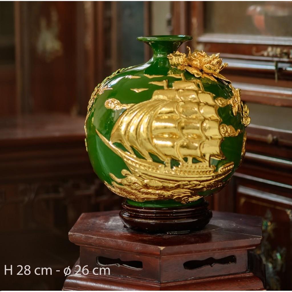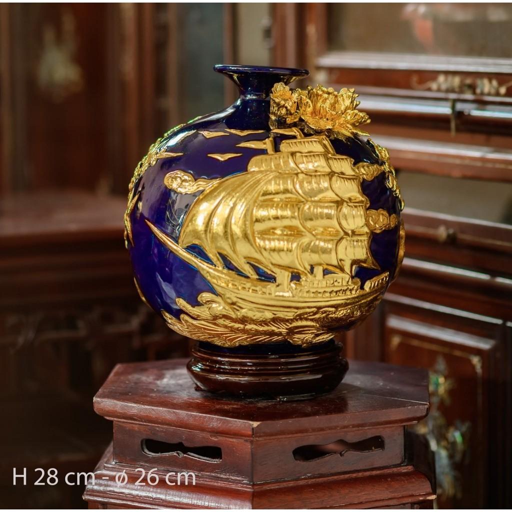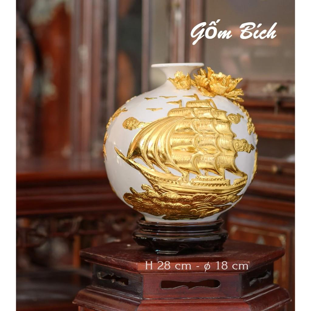 ✨Bình Hút Tài Lộc Thuận Buồm Xuôi Gió Dát Vàng Bình Phong Thủy Tài Lộc Gốm Sứ Bát Tràng - Gốm Bích