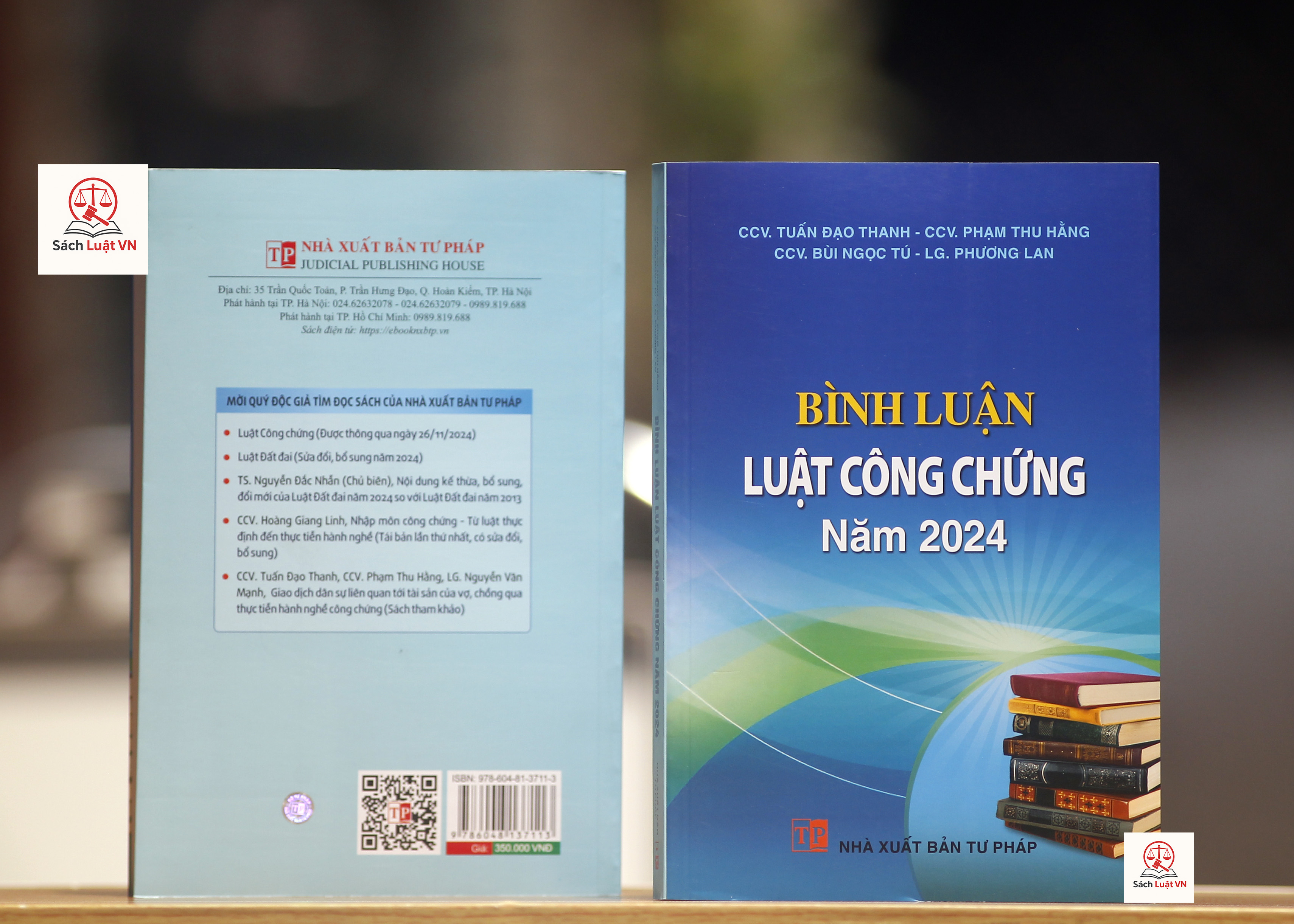 Nhằm cung cấp cho độc giả một góc nhìn toàn cảnh các quy định của Luật Công chứng năm 2024 trước những thay đổi nhanh chóng của thực tiễn cuộc sống cũng như việc sửa đổi, bổ sung rất nhiều đạo luật có liên quan trực tiếp hoặc gián tiếp đến hoạt động này, Nhà xuất bản Tư pháp xuất bản cuốn “Bình luận Luật Công chứng năm 2024”. Dưới nhãn quan của công chứng viên, các tác giả đã phân tích, bình luận một số nội dung của Luật chủ yếu dựa trên kinh nghiệm hành nghề thực tế của bản thân, yêu cầu, đòi hỏi khách quan của cuộc sống được đặt trong tương quan so sánh với nội dung những văn bản quy phạm pháp luật điều chỉnh một số lĩnh vực có liên quan mật thiết đến hoạt động công chứng.