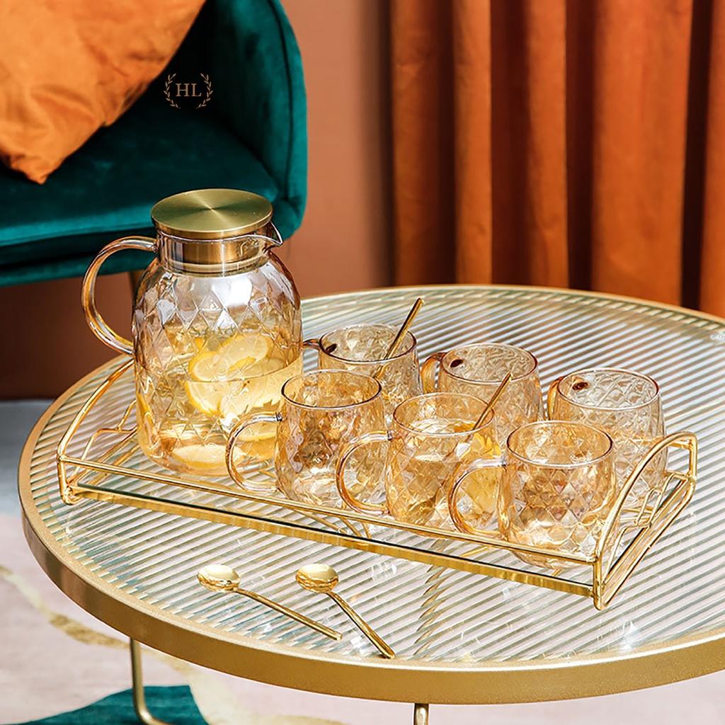 SET BÌNH CỐC THỦY TINH KÈM KHAY DECOR | BỘ BÌNH CỐC THỦY TINH KÈM KHAY SANG CHẢNH DECOR PHONG CÁCH RETRO Phong cách Retro thường có cảm giác như một tác phẩm nghệ thuật