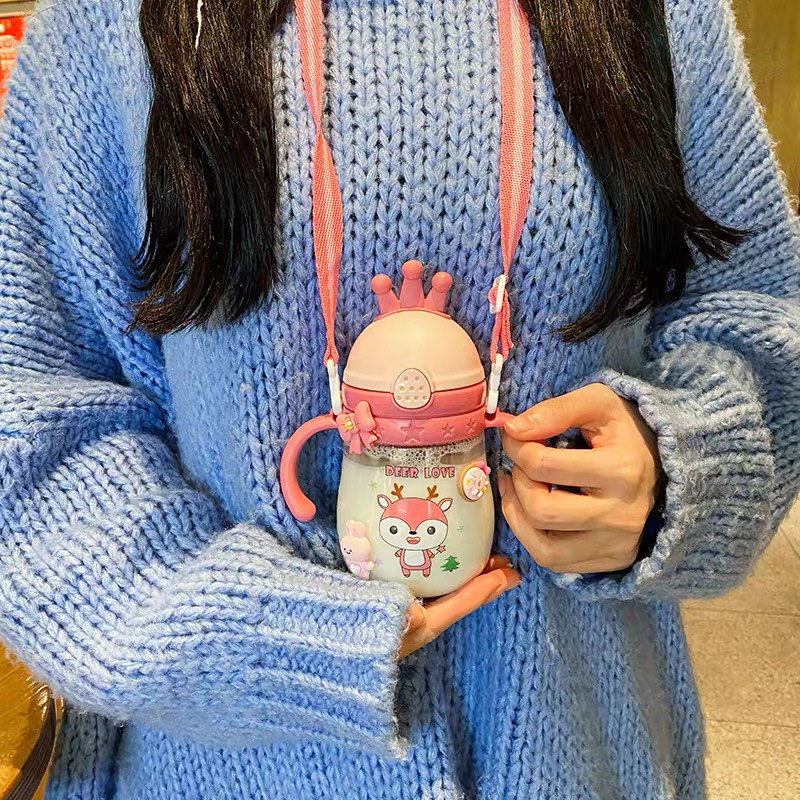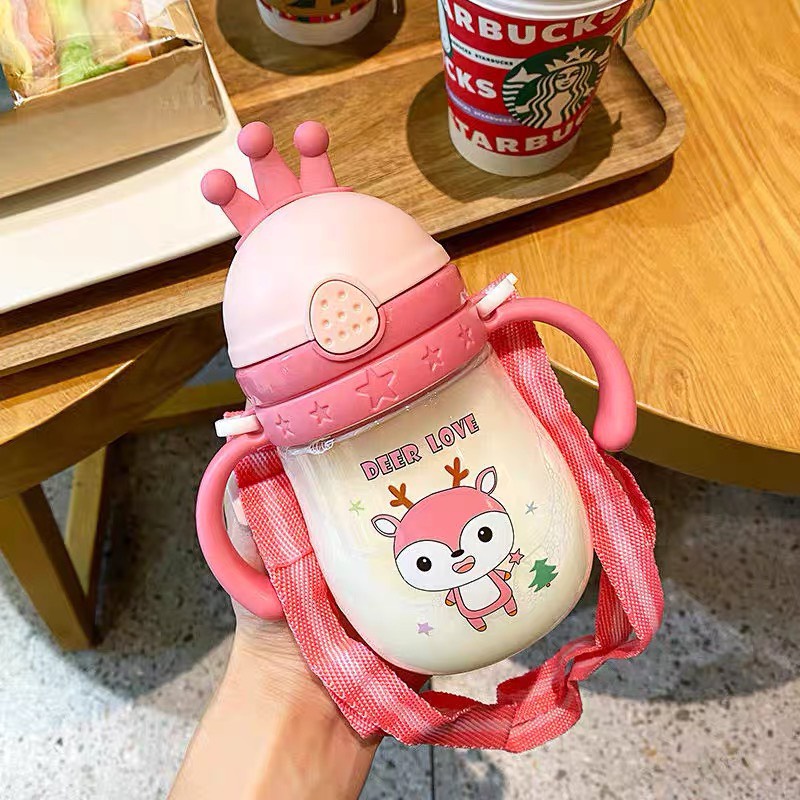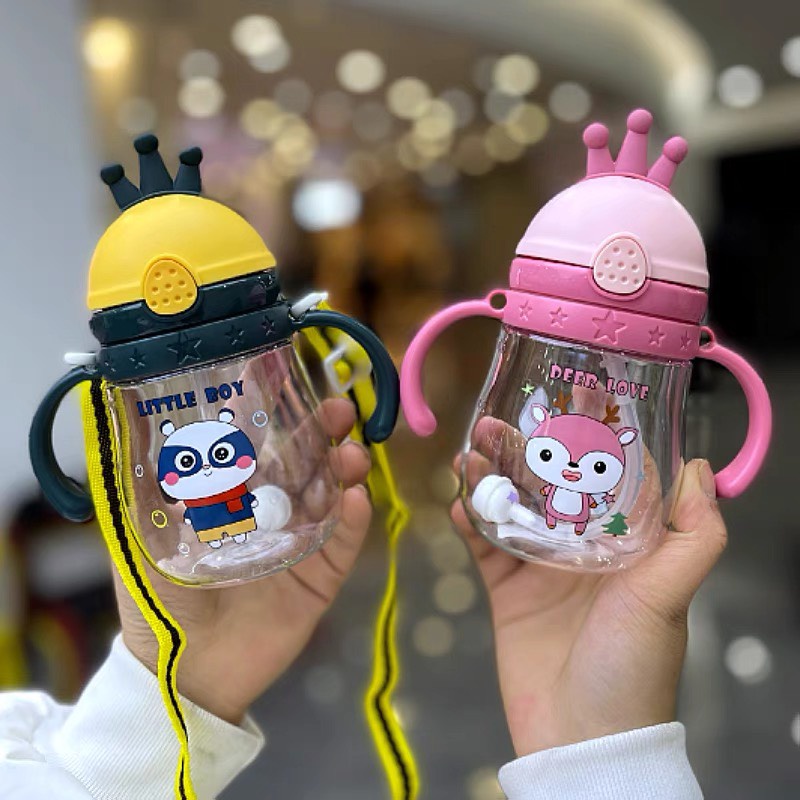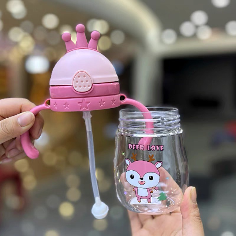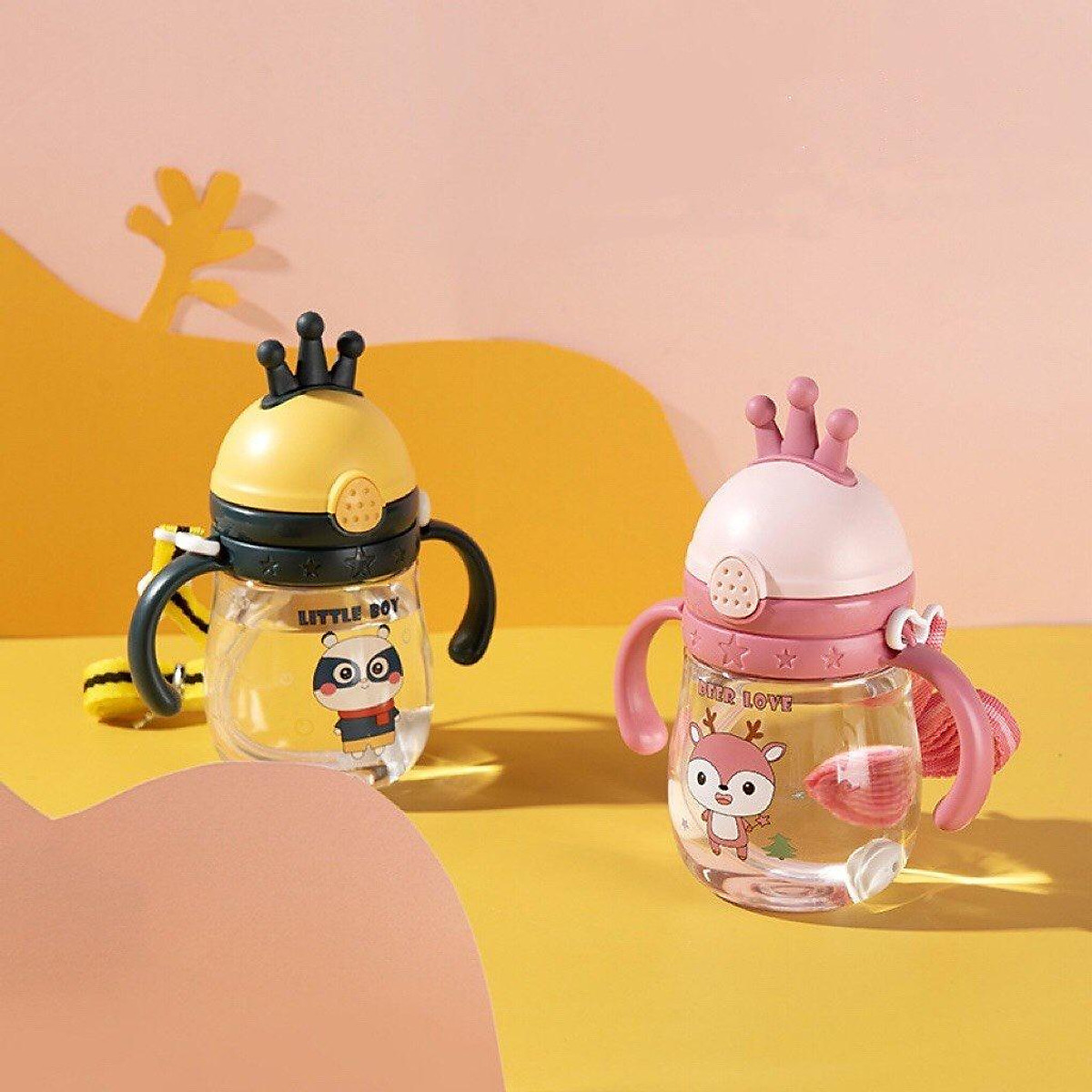 Bình Nước Có Ống Hút Cho Bé Tập Uống Có Van Chống Sặc Hình Vương Niệm Cao Cấp 300ml Bằng Nhựa PP Chịu Nhiệt Tốt Có Tay Cầm Tiện Lợi - Hàng Loại 1 -