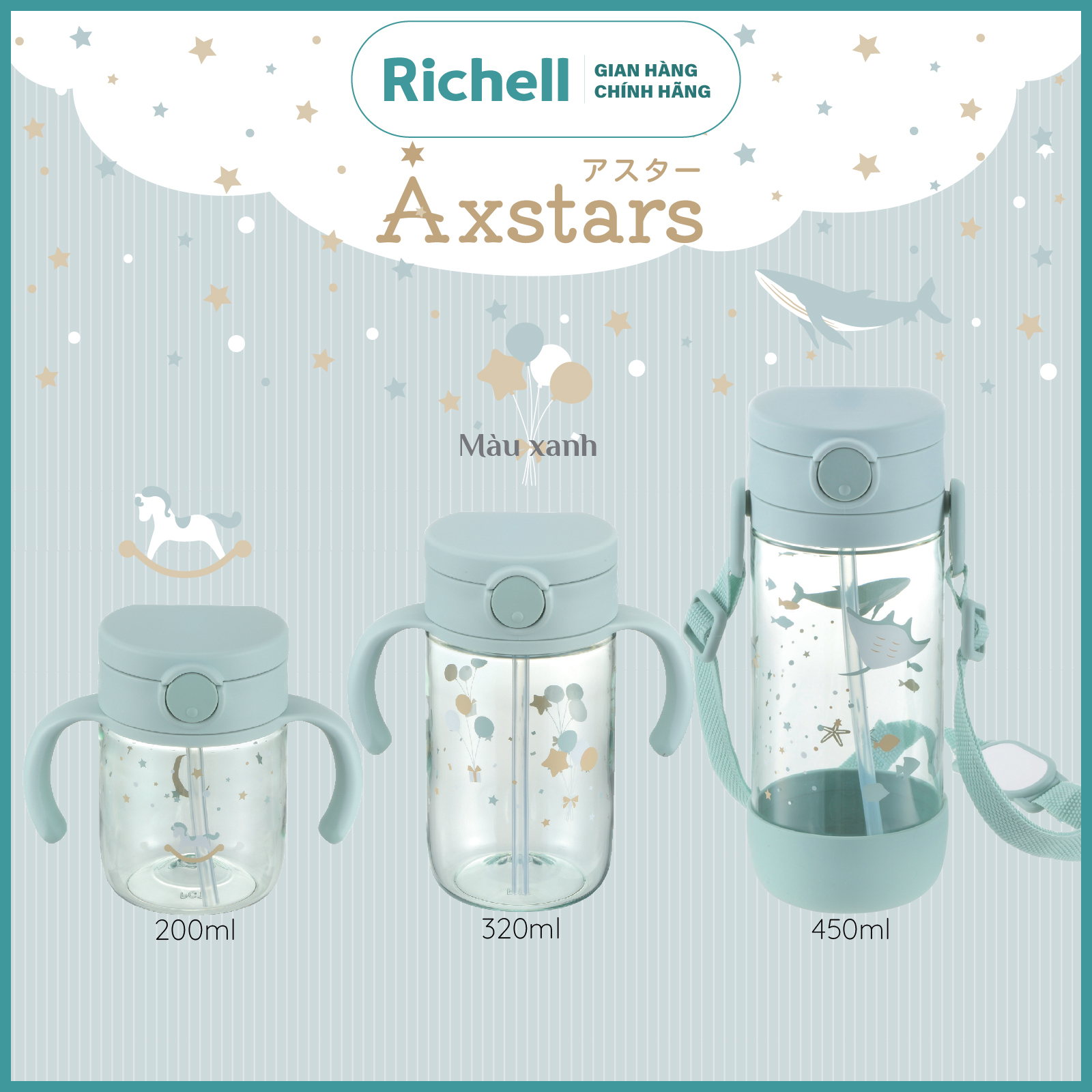 ✨Bình ống hút AXSTARS Richell Nhật Bản 200ml chống sặc cho bé từ 6 tháng | Baby