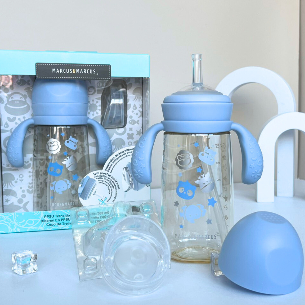 ✨Bình Tập Uống Chuyển Tiếp PPSU Marcus & Marcus 300ml Cho Bé Từ 6 Tháng – Xanh, Hồng