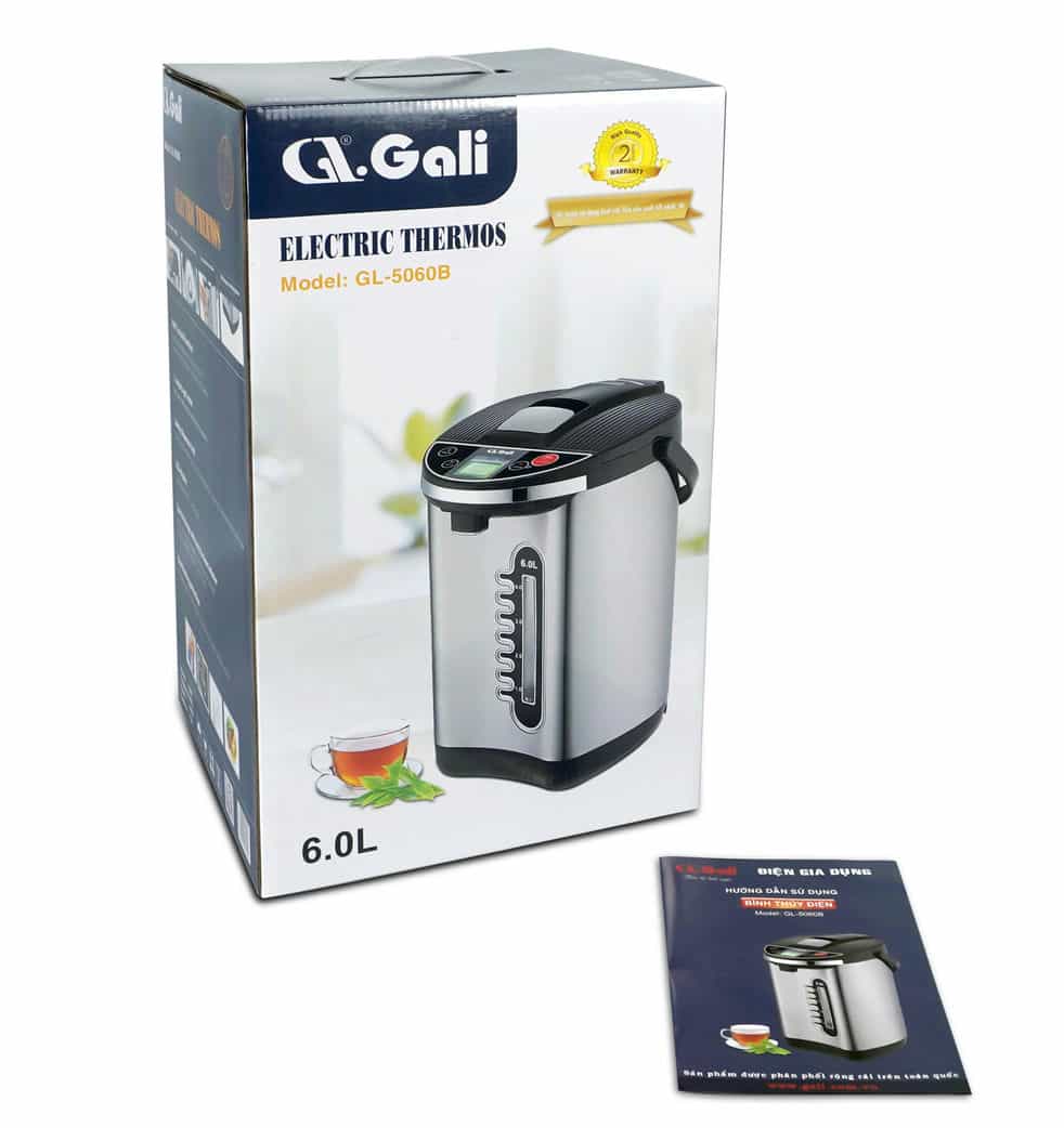 Bình thủy điện Gali GL-5060B 6 Lít - Dung tích 6 lít, công suất 680w/220Vac-50Hz. - Cấu tạo 2 lớp chống nóng, vỏ ngoài inox sang trọng, thân trong inox 304 không phôi nhiễm, an