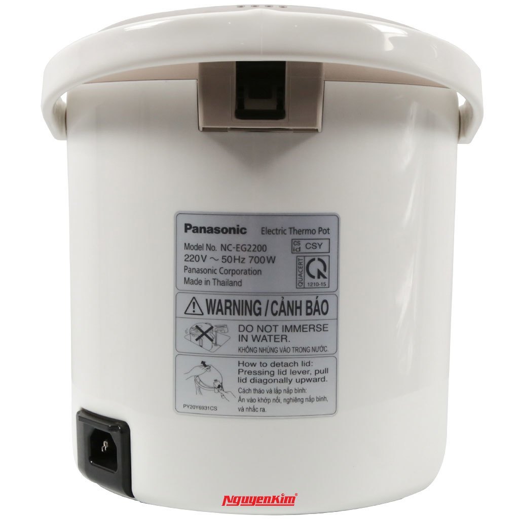 Bình thủy điện Panasonic 2.2 lít NC-EG2200CSY - Thiết kế vô cùng thông minh với chế độ tự động, chỉ cần cho nước vào bình rồi cắm công tắc. - Bình thủy điện có
