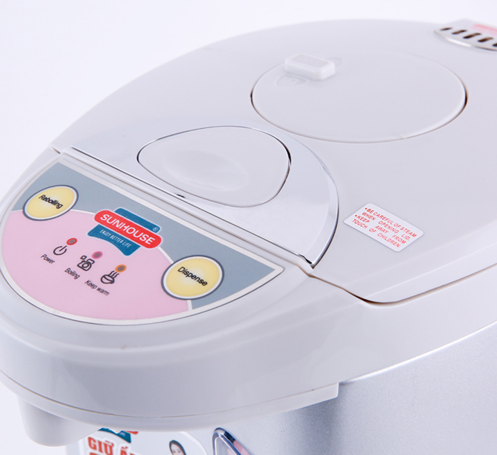 - Vỏ bình bằng nhựa bền chắc, cách nhiệt tốt cho bạn yên tâm sử dụng lâu dài. Hiển thị mực nước rõ ràng Bình Thủy Điện Sunhouse SH1535 (3.5L) thiết kế thân bình có một cột hiển thị mức nước trong bình lớn giúp người sử dụng dễ dàng quan sát và điều chỉnh mực nước trong bình sao cho hợp lý. Ruột bình có bộ lọc nước Bình Thủy Điện Sunhouse SH1535 (3.5L) trang bị bộ lọc nước trong ruột bình giúp lọc nước, chống bám cặn nên nguồn nước sạch rất an toàn cho sức khỏe. Công suất 735W Bình Thủy Điện Sunhouse SH1535 (3.5L) có công suất 735W giúp đun sôi cực nhanh nên chỉ mất vài phút là bạn đã có ngay một bình nước nóng để sử dụng cho cả gia đình. Tự động đun sôi, giữ ấm tiện lợi và có khóa an toàn Bình Thủy Điện Sunhouse hoạt động với cơ chế tự động đun sôi khi châm thêm nước lạnh hoặc đun nóng đến 100 độ C, bạn chỉ cần cho nước vào bình và nối thiết bị với nguồn điện giúp bạn có nước sôi sử dụng trong thời gian nhanh nhất. Ngoài chức năng đun sôi, sản phẩm còn có chức năng giữ ấm, phù hợp sử dụng nước pha trà, cà phê hay pha nước tắm cho em bé mà không cần đun lại. Bình có nút khóa an toàn khi rót nước, hạn chế bỏng tay khi sử dụng. Có khóa bơm tay an toàn Bình Thủy Điện Sunhouse SH1535 (3.5L) được trang bị khóa bơm tay an toàn, khi bật chức năng này, bình sẽ tự động khóa vòi nước, giúp đảm bảo an toàn cho người sử dụng ngay cả khi nhà bạn có trẻ nhỏ. An toàn khi sử dụng Bình Thủy Điện Sunhouse có chế độ tự động ngắt khi vòi sôi và khi bị trào nước, đảm bảo an toàn cho người sử dụng, không gây ảnh hưởng đến nguồn điện. Bình cũng có bộ phận bảo vệ chống rò điện, quá tải nhiệt và chống cạn nước cho bạn yên tâm sử dụng. Kiểu dáng sang trọng Bình Thủy Điện Sunhouse SH1535 (3.5L) được thiết kế sang trọng với tông màu xám phối trắng tinh tế, mang đến vẻ hiện đại cho mọi không gian sử dụng như: nhà bếp, phòng làm việc,… Dung tích lớn Bình Thủy Điện Sunhouse SH1535 (3.5L) có dung tích 3.5 lít giúp bạn đun và giữ ấm được thật nhiều nước nóng, chỉ cần một lần đun bạn đã có đủ nước nóng sử dụng cho cả gia đình 4 – 6 người trong 1 ngày, phù hợp cho các bà mẹ có con nhỏ hoặc gia đình ít người. Màn hình LCD dễ quan sát Bình Thủy Điện Sunhouse thiết kế màn hình màn hình LCD thiết lập bộ đếm thời gian và nhiệt độ giúp bạn dễ quan sát để điều chỉnh chế độ nhiệt thật dễ dàng. Dây diện có thể tháo rời Dây điện của Bình Thủy Điện Sunhouse có thể tháo rời giúp bạn dễ dàng xếp khi không sử dụng bình, tiết kiệm không gian sử dụng. Quai đeo tiện di chuyển Bình Thủy Điện Sunhouse có quai đeo để di chuyển vị trí dễ dàng mà ít tốn sức, đồng thời đảm bảo an toàn cho người sử dụng. Chân đế tháo rời và xoay 360 độ Chân đế của Bình Thủy Điện Sunhouse có thể tháo rời nên rất thuận tiện khi nhấc lên đặt xuống hay khi muốn thay đổi vị trí đặt bình. Chân đế có thể xoay 360 độ, không gây khó khăn khi bạn di chuyển bình. Hướng dẫn sử dụng