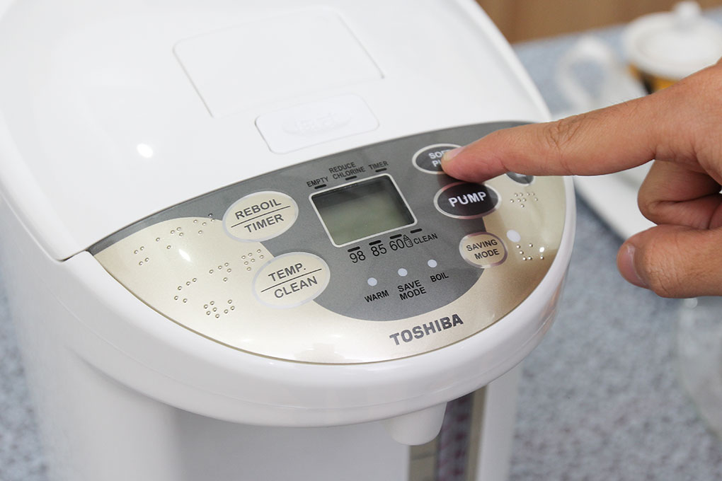 • Sản xuất tại: Thái Lan Bảo hành: 12 tháng Chế độ cảm biến ánh sáng Bình thủy điện Toshiba PLK-45SF(WT)VN được trang bị cảm biến ánh sáng hiện đại. Khi ánh sáng ở môi trường xung quanh yếu đi, bình thủy có khả năng tự động chuyển sang nhiệt độ giữ ấm thấp nhất ở 60 độ để tiết kiệm điện năng. Bình thủy sẽ trở lại nhiệt độ ban đầu khi ánh sáng xung quanh trở lại bình thường. Chế độ hẹn giờ thông minh Bình thủy điện Toshiba PLK-45SF(WT)VN được tích hợp chế độ hẹn giờ thông minh. Khi sử dụng chế độ này, nhiệt độ trong bình sẽ chuyển từ 98 độ C hoặc 85 độ C về nhiệt độ giữ ẩm 60 độ C. Sau 6 tiếng, nước trong bình sẽ được đun sôi trở lại và đạt ngưỡng nhiệt độ như ban đầu. 3 mức cài đặt nhiệt độ tiện lợi Hiện tại, sản phẩm này đang hỗ trợ 3 mức chọn nhiệt độ giữ ẩm là 60 độ C - 85 độ C - 90 độ C. Với 3 mức độ này cho phép bạn sử dụng nước nóng với nhiều mục đích khác nhau như: Nấu mì, pha sữa, pha trà, trụng rau, pha cà phê… Chức năng khử mùi Clo bảo vệ sức khỏe Bình thủy điện bao gồm chức năng khử mùi Clo giúp nước uống thêm phần tinh khiết và an toàn, bảo vệ sức khỏe cho cả gia đình bạn. Cách sử dụng cũng rất dễ dàng, chúng ta chỉ cần nhấn vào nút “Reboil” 2 lần khi bình đang ở chế độ giữ ẩm hoặc 1 lần khi nước sôi. Khi nào thấy đèn báo Reduce Chlorine phát sáng là được. Ống bơm nước an toàn Hệ thống rót nước bằng bơm điện của bình thủy điện Toshiba PLK-45SF(WT)VN rất an toàn và dễ sử dụng. Chỉ cần nhấn một lực nhẹ vào nút “Pump” trên bảng điều khiển là có thể lấy nước ra khỏi ấm. Ngoài ra, bình thủy điện cũng sẽ tự động khóa nút nhấn sau khi rót nước trên 5 giây. Bạn hãy nhấn vào nút “Unlock” để sử dụng cho lần tiếp theo. Bình thủy điện có thiết kế dễ sử dụng và đẹp mắt Sản phẩm này có 2 chế độ rót nước: Soft và Normal. “Soft” sẽ giúp nước chảy nhẹ nhàng, hạn chế bắn nước nóng ra ngoài làm bỏng da. “Normal” giúp nước chảy nhiều, làm đầy cốc nhanh chóng. An toàn khi sử dụng Bình thủy điện Toshiba PLK-45SF(WT)VN tự động ngắt điện khi ấm cạn nước, tránh tình trạng đun sôi khô. Sau khi tự ngắt an toàn, bình sẽ phát chuông báo hiệu và đèn nhấp nháy liên tục để thông báo người dùng châm thêm nước. Khóa trẻ em sẽ ngăn bơm điện tử hoạt động, tránh việc các bé bị bỏng do nghịch phá.   *** Các hình ảnh chỉ mang tính chất minh họa