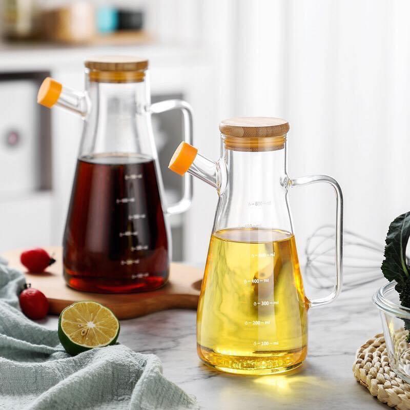 Bình Thủy Tinh Rót Dầu Ăn/Nước Mắm Có Vòi & Phễu Tích Hợp – Dung Tích 500ml – Chai Đựng Gia Vị Thông Minh, Chịu Nhiệt, Có Vạch Chia Thông Tin Chung - Dung tích:
