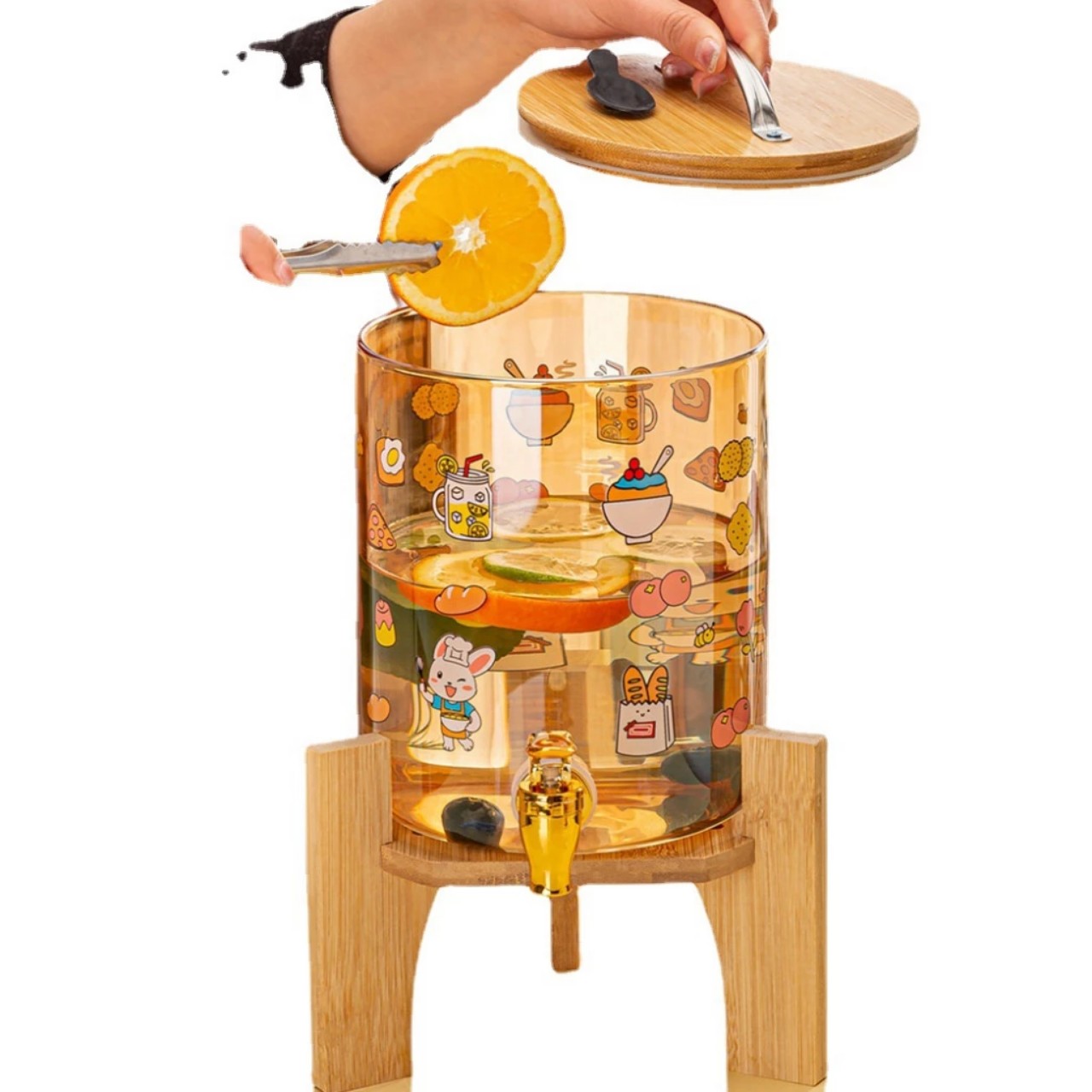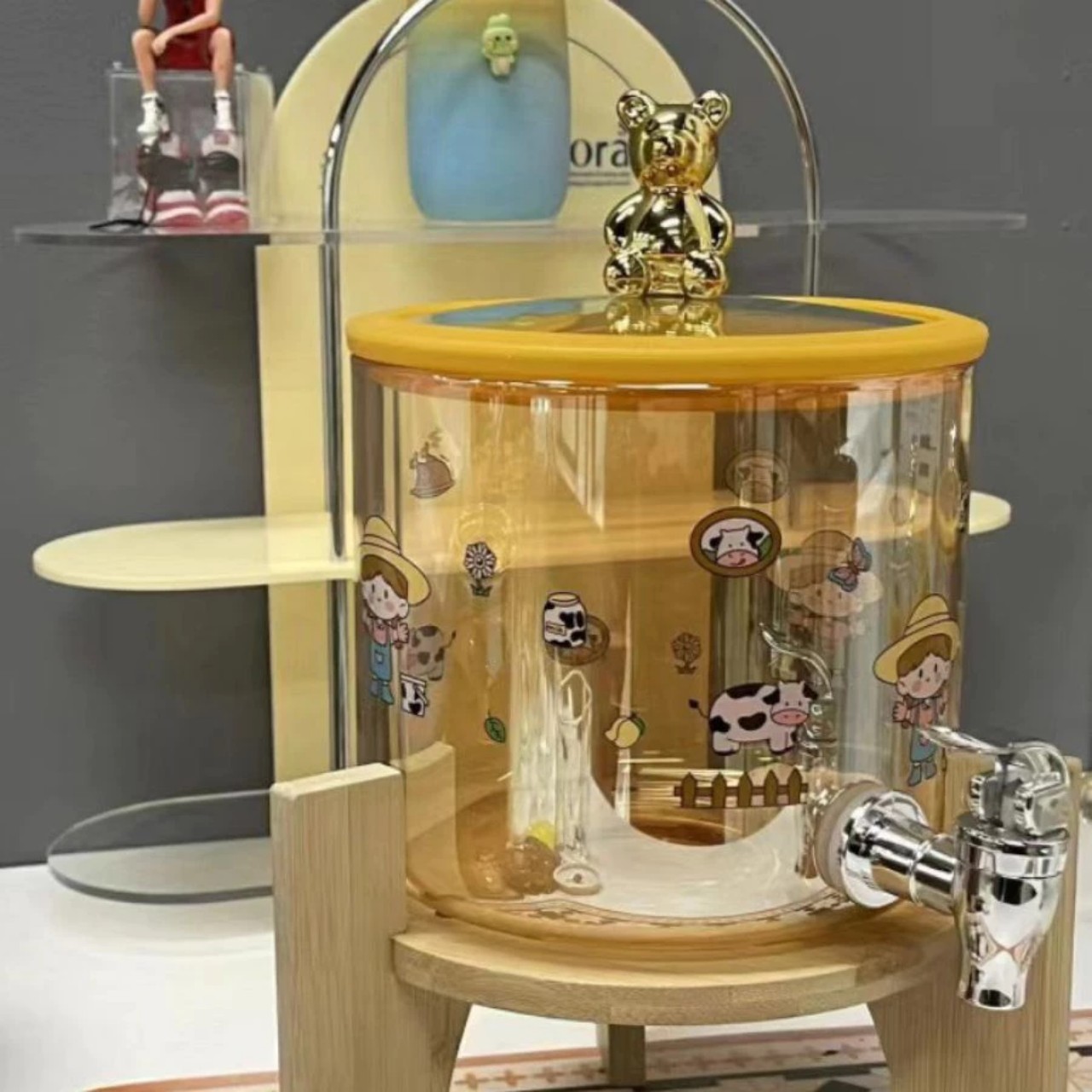 ✨Bình Trà, Bình Đựng Nước Thủy Tinh Stiker Cao Cấp 2.5L và 3.5L Có Vòi, Có Nắp Đậy + Tặng Kèm Kệ Gỗ - Bình Pha trà, Nước Trái Cây- HÀNG CHÍNH HÃNG MINIIN