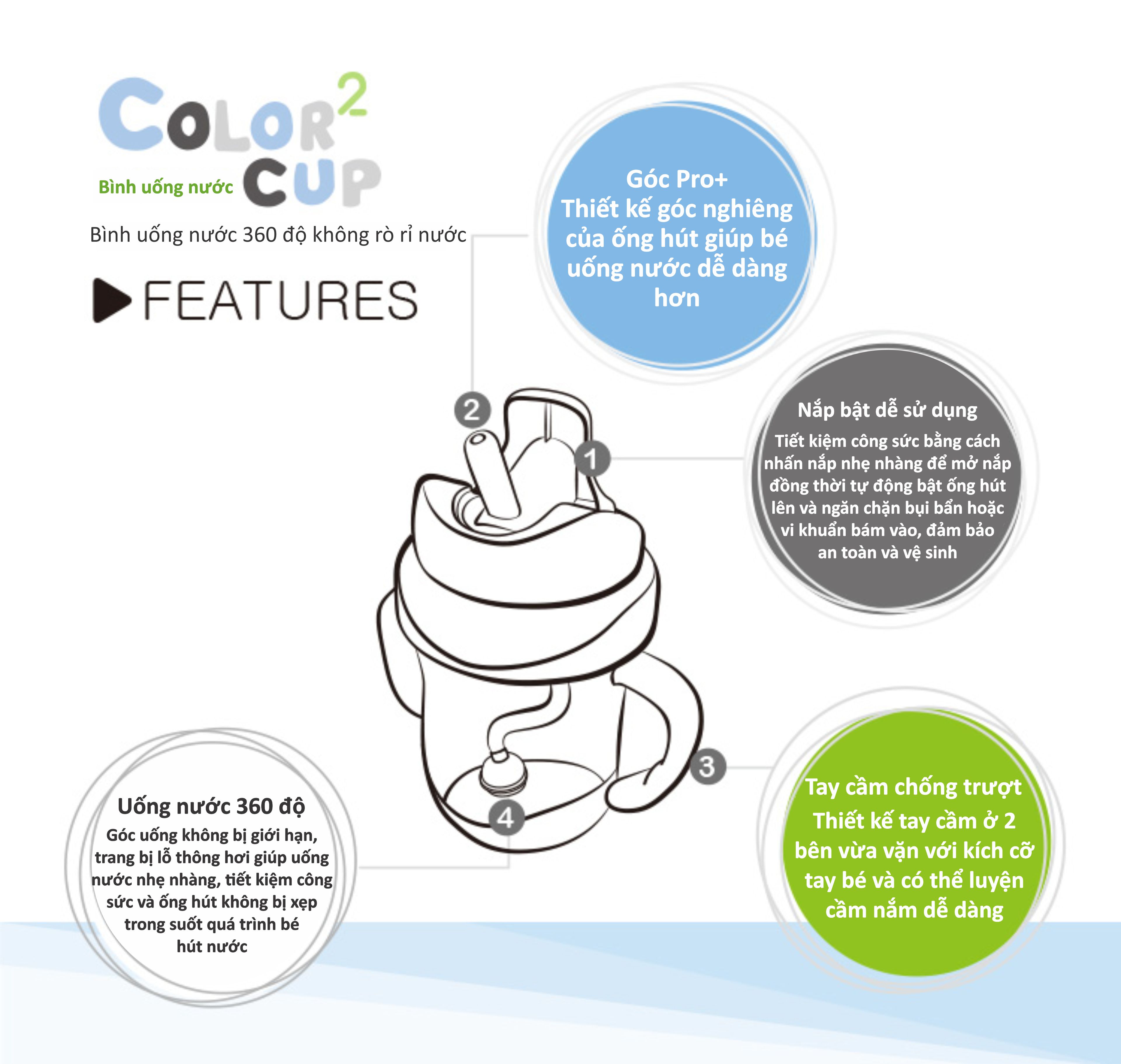 Bình uống nước Color 2 - " Bí quyết khiến bé yêu thích uống nước"