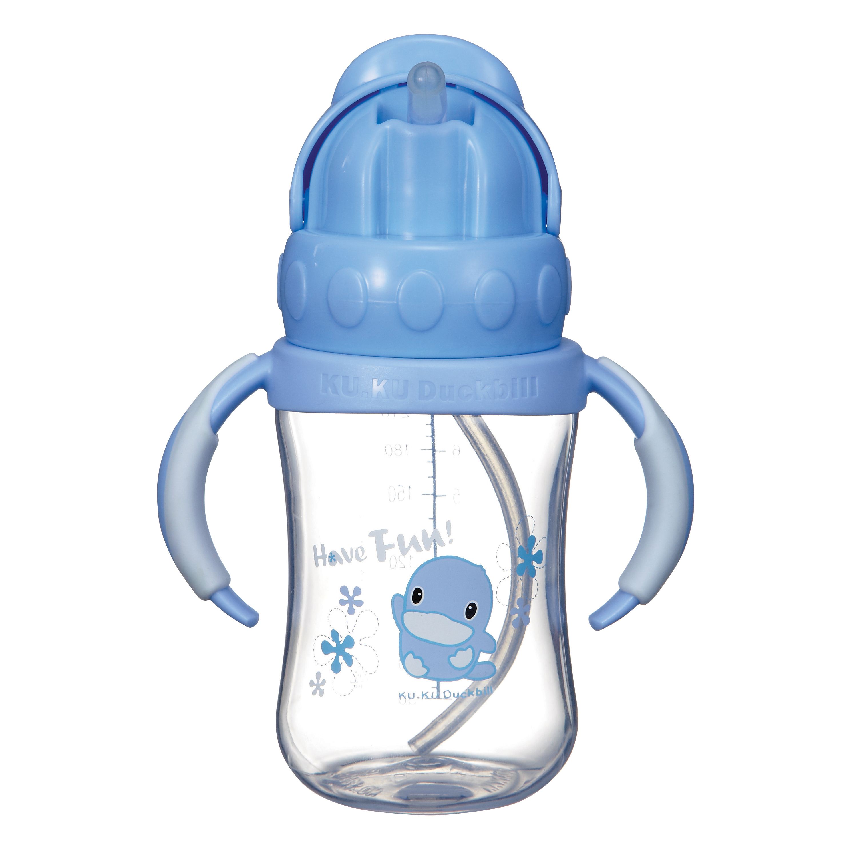 Bình Uống Nước Có Tay Cầm Nhựa PP KuKu KU5925 đi kèm ống hút chống tràn, chỉ tiết nước khi bé hút giúp bé vận động cơ hàm và môi tốt hơn. Bề mặt sản phẩm có vạch chia thể tích rõ ràng giúp ba mẹ pha sữa, trà hoặc nước ép cho bé thật dễ dàng.