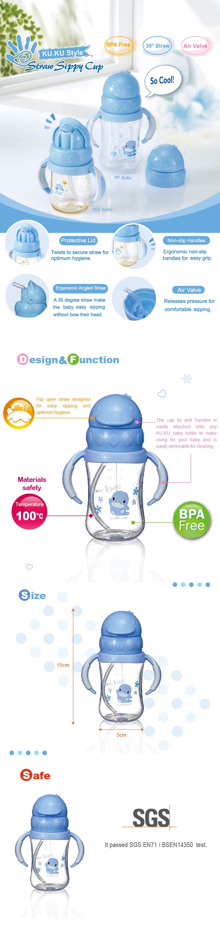 - Chất liệu nhựa PP và silicone cao cấp, không chứa BPA, an toàn cho sức khỏe của bé; - Thiết kế tiện dụng, ống hút sẽ bật ra ngay khi bạn nhấn, sử dụng