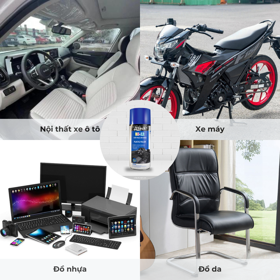 Tên sản phẩm: Chất phục hồi nhựa - đánh bóng nhựa O’tech BX-12 Plastic Polish Mô tả sản phẩm Chất phục hồi nhựa – Đánh bóng BX-12 BX-12 là một sản phẩm chất lượng cao. Công thức tạo lớp phủ bề mặt giúp phục hồi và bảo vệ, cung cấp độ sáng bóng tuyệt vời và hương thơm tươi mát lâu dài. Nó có thể được sử dụng trên các bề mặt như vinyl, nhựa, da, bảng điện tử, phụ kiện xe hơi, thiết bị thể thao, v.v. Thành phần chính: Propane, Emulsifying Agent, Wax, Dầu silicon Dimethyl (PDMS), Fragrance. Propane: Được sử dụng như một chất đẩy trong các sản phẩm dạng xịt. Nó giúp phân tán các thành phần khác ra khỏi bình xịt một cách đều đặn. Propane cũng giúp sản phẩm dễ dàng áp dụng trên bề mặt cần đánh bóng. Emulsifying Agent (Chất tạo ổn định): Chất này giúp kết hợp và giữ các thành phần không tương thích với nhau (như dầu và nước) trong một hỗn hợp đồng nhất. Điều này đảm bảo rằng sản phẩm không bị tách lớp và có thể được áp dụng một cách đều đặn lên bề mặt nhựa. Wax (Sáp): Sáp cung cấp lớp bảo vệ mỏng, giúp bề mặt nhựa trở nên sáng bóng và chống lại các tác nhân gây hại như bụi bẩn, nước, và tia UV. Lớp sáp cũng có thể giúp che giấu các vết xước nhỏ và làm mới bề mặt nhựa. Dầu silicon Dimethyl (PDMS): Dầu silicone giúp tăng cường độ bóng và bảo vệ bề mặt nhựa, giúp nó trở nên mềm mại và có độ đàn hồi cao. Nó cũng giúp bề mặt nhựa trở nên mượt mà và chống lại sự bám dính của bụi bẩn và các vết bẩn khác. Dầu silicon Dimethyl (PDMS) có thể phục hồi nhựa ở một mức độ nào đó, tùy thuộc vào loại nhựa, mức độ hư hỏng và cách sử dụng PDMS. Cách thức hoạt động: PDMS thấm vào các vết nứt và lỗ nhỏ trên bề mặt nhựa, lấp đầy và làm phẳng chúng. PDMS tạo ra một lớp màng bảo vệ trên bề mặt nhựa, giúp ngăn ngừa sự lão hóa và hư hỏng thêm. PDMS có thể làm cho nhựa mềm mại và dẻo dai hơn, giúp giảm nguy cơ nứt vỡ. Tuy nhiên: PDMS không thể phục hồi hoàn toàn nhựa bị hư hỏng nặng. PDMS có thể không tương thích với một vài loại nhựa. Fragrance (Hương liệu): Thành phần này không ảnh hưởng trực tiếp đến hiệu suất của sản phẩm nhưng tạo ra mùi thơm dễ chịu, giúp cải thiện trải nghiệm sử dụng sản phẩm. Các thành phần này kết hợp với nhau tạo nên một sản phẩm đánh bóng nhựa hiệu quả, giúp bảo vệ và phục hồi bề mặt nhựa, làm cho chúng trở nên sáng bóng và mới mẻ hơn.