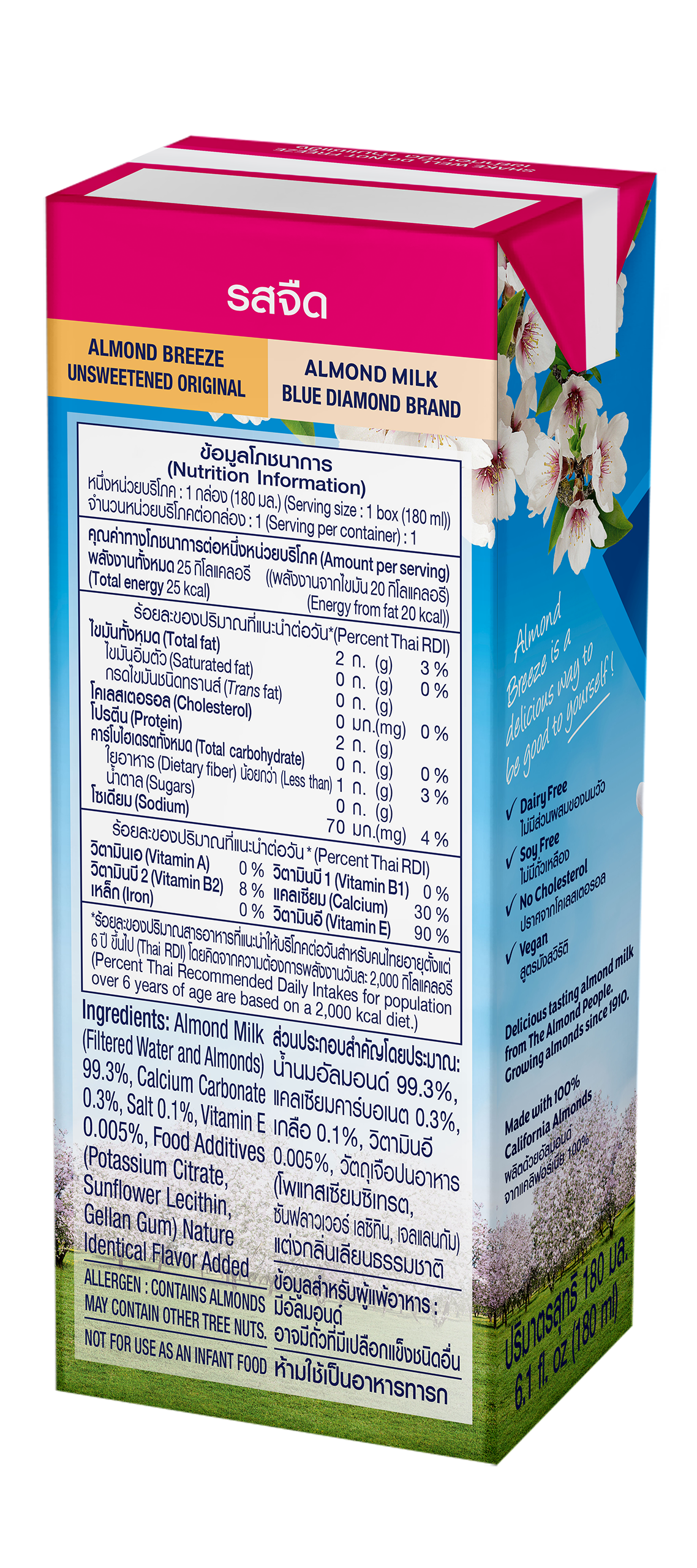 ALMOND BREZZE tự hào là sản phẩm sữa hạt hạnh nhân có SẢN LƯỢNG TIÊU THỤ SỐ 1 TẠI MỸ và vinh dự là SẢN PHẨM SỮA HẠT DUY NHẤT được phục vụ trong bữa chính TRÊN CHUYẾN BAY KHAI TRƯƠNG TRỰC TIẾP ĐẦU TIÊN VN98 TỪ VIỆT NAM SANG MỸ. Sữa hạt hạnh nhân ALMOND BREEZE (Sản phẩm của Tập đoàn BLUE DIAMOND – Mỹ) là thức uống bổ dưỡng hàng ngày tốt cho sức khỏe. Đặc biệt THÍCH HỢP VỚI KHÁCH HÀNG BỊ DỊ ỨNG VÀ KHÔNG DUNG NẠP ĐƯỢC ĐƯỜNG SỮA (Lactose); những người ăn chay; phụ nữ mang thai và cho con bú với thành phần dưỡng chất giàu Canxi và Vitamin E; không Cholesterol và không chứa các thành phần từ đậu nành và sữa. Chiết xuất hạnh nhân lên đến 99.3% ALMOND BREEZE NGUYÊN CHẤT KHÔNG ĐƯỜNG giúp bạn cảm nhận trọn vẹn tinh túy chất lượng hạnh nhân từ Mỹ. Sữa hạt hạnh nhân ALMOND BREEZE là sản phẩm sữa hạt tốt cho sức khỏe của bạn và gia đình bạn vì: